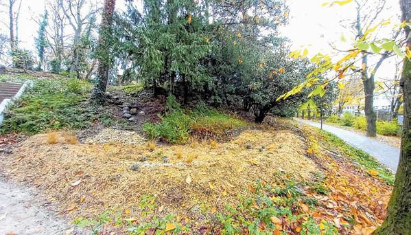 További, fontos szempont volt az, hogy milyen problémát oldunk meg az esőkert létesítésével. Az Erzsébet-sétány felső, érintett gyalogútja minden csapadék eseménykor eróziós károkat szenvedett, ugyanis az alsóvárosi temető útjairól ide folytak a vizek. Itt a meredek domboldalban lefolyáslassítást is kellett alkalmazni, mert elég hosszú, nagyjából 20%-os lejtésű bevágásban kormányozzuk a vizet az esőkertbe.