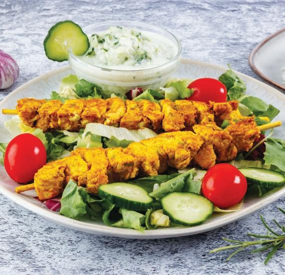 4. A csirkenyársat salátalevélen, a tzatzikivel és párolt rizzsel tálaljuk.