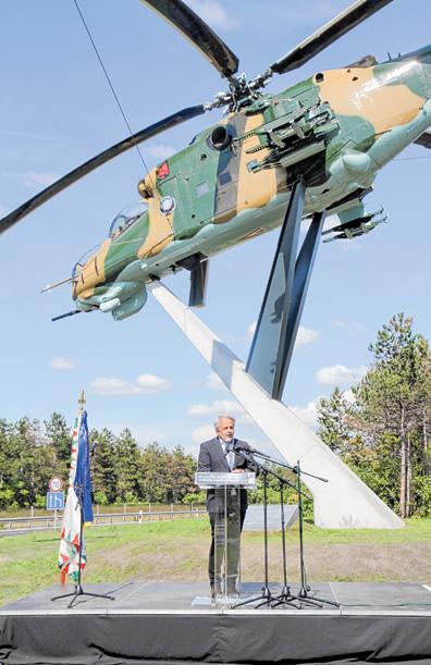 LUCIDUS n A 8as főúton elhaladók már hetekkel ezelőtt láthatták a napról napra formálódó emlékművet, sokan meg is álltak egy fotózásra a legendás „Csőrike” márkatársa, Főnix előtt. Vargha Tamás, a Honvédelmi Minisztérium miniszterhelyettese, Székesfehérvár országgyűlési képviselője beszédében személyes élményt is előhozott: egykoron több olyan hallgatóját is tanította angolra, aki „Szentkirályon” repült, s maga is kísért delegációkat a reptérre. 1978 augusztusában szállt le az első 4 „szarvastehén”, s 2004ig Szentkirályszabadján szolgált újabb géptársaival. Időtállóságukra, strapabírásukra mi sem jellemzőbb, mint az, hogy Szolnokon ma is öt Mi–24es áll hadrendben. Mind a gé