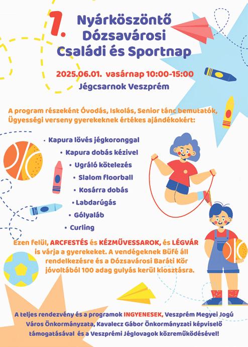 A lapot alapította Kovácsi Miklós. Szerkeszti: a szerkesztőbizottság Felelős kiadó: Dr. Kovács Juliánna ügyvezető igazgató Kiadja: Szuperinfó Magyarország Média Kiadói Kft., 8200 Veszprém, Házgyári út 12. Szerkesztőség: Veszprémi 7 Nap, 8200 Veszprém, Házgyári út 12. e-mail: veszpremi7nap@maraton.hu Hirdetési információ: Szuperinfó Magyarország Média Kiadói Kft., 8200 Veszprém, Házgyári út 12. Tel.: 06/20/218-2669, e-mail: veszpremmaraton@maraton.hu, http://www.maraton.hu Apróhirdetések feladása: Veszprémi Hirdető Iroda, Veszprém Kossuth u. 6. félemelet Nyomdai munkák: Mediaworks Hungary Zrt. • Megrendelés száma: V 9/2025 • A lap ingyenes • Megjelenik 29 000 példányban. • Terjeszti a MédiaLOG-DMH Zrt. ISSN 1219-0748 Terjesztéssel kapcsolatos észrevételeket a 06/20/218-2669-es telefonszámon és a v7terjesztes@maraton.hu e-mail címen várjuk