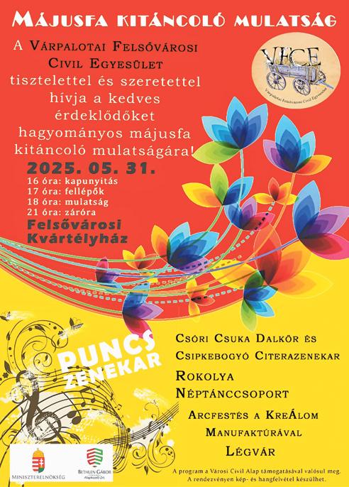 Májusfa-kitáncoló mulatság május 31-én, szombaton 16 órától a Felsővárosi Civil Egyesület szervezésében a Felsővárosi Kvártélyház udvarán. Fellép a Csóri Csuka Népdalkör és a Csipkebogyó Citerazenekar, műsort ad a Rokoly Néptánccsoport. Arcfestés a Kreálom Manufaktúrával, a gyermekeknek légvár
