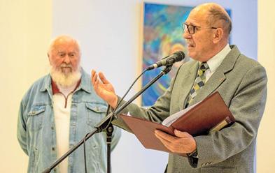 Pócsik József könyvtárvezető méltatta a megnyitón Öveges József festőművészt FOTÓ: SZABÓ PÉTER DÁNIEL