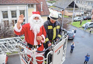 Vármegyei Szent Rafael Kórház gyermekosztályán gyógyulóknak, akikhez a Mikulás a második emeleti ablakon át érkezett. A nagyszakállúnak ismét tűzoltók segítettek, így juttatta el ajándékait a kicsikhez.
