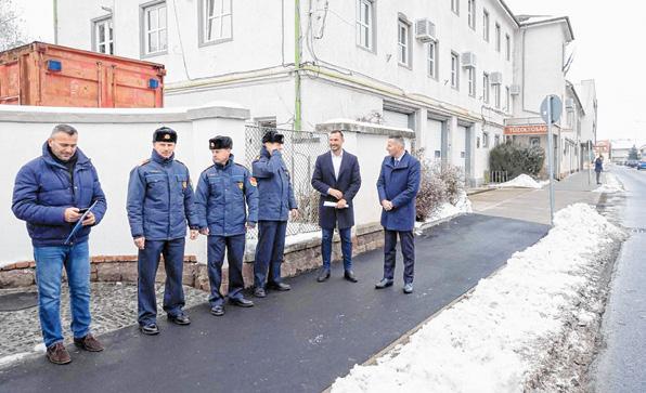 hajtók bazaltbeton burkolatot kaptak, a garázsbejárónál pedig öntöttvas rácsos átereszt építettek ki. A munkálatok részeként az ereszkifolyókat bekötötték a hálózatba, valamint megújult a tűzoltóság kerítésében található ivóvízkút környezete is. A másik beruházás a csácsi városrész egyik fontos gyűjtőútját érintette. A Nyerges utca Domb és Holló utcák közötti szakaszán nemcsak az elhasználódott burkolat indokolta a beavatkozást, hanem a föld alatti