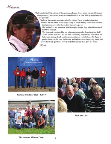 Welcome... Welcome to the 29th edition of the Autumn Alliance. Once again we are offering an elite group of young cows, many with heifer calves at side. This group of females are powerful. We have also added more single heifer calves. These graceful, attractive females are the cream of the crop. Many of these leading ladies will become front pasture cows after their show career wraps up. The bull calves are awesome. While ranging in age, they all exhibit over all herd bull strength. The livestock consigned by our sale partners are also from their top shelf. Thank you to Jack and Lois for their continuing support and friendship. To Cathy and Ashley, thank you for your continued contributions. To Ryan, a special thank you for your dedication and help with the day to day work load. If you have any questions or require further information give me a call.