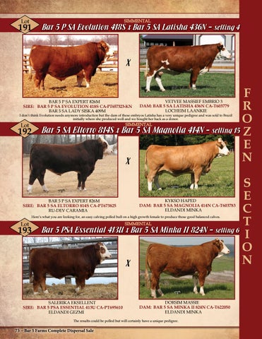 BAR 5 P SA EXPERT 826M SIRE: BAR 5 P SA EVOLUTION 418S CA-PT657323-KN BAR 5 SA LADY SISKA 409M