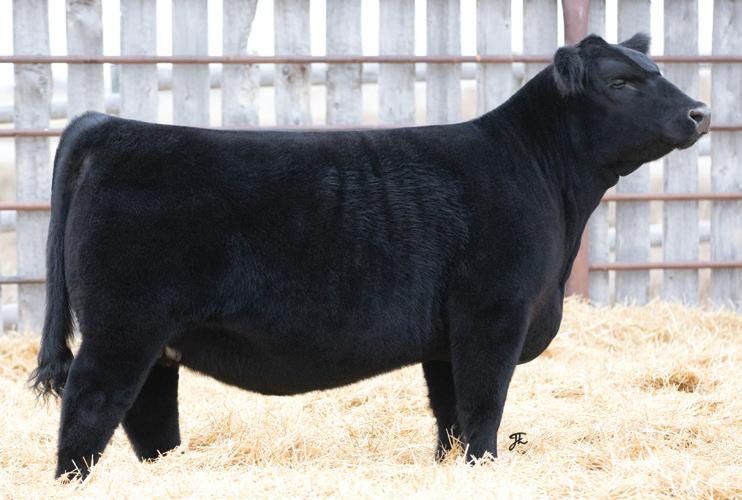 There is no name in Angus circles that gets the heart pumping quite like that of the lovely Lady May! Lady May 54J is only beginning to write her story in the history books, but she can already boast being the February Freeze high seller for 2023, and the most talked about female from the outstanding Bandura dispersal. We are confident to go as far and venture that this impeccable daughter of 4382 has every opportunity to be everything and more that her highly admired mother is. This flawlessly made, eye appealing female has extremely superior udder quality, tremendous body mass, and the numbers to tie it all together. Mated to the ultimate female maker whose demand far outreaches his supply, the new generation of Lady May is a sound investment. Embryos are stored at Bow Valley Genetics. Guarantee one pregnancy if implanted by a certified technician. Consigned by 719 Cattle, Dudgeon Cattle Co., and Lee Shologan.