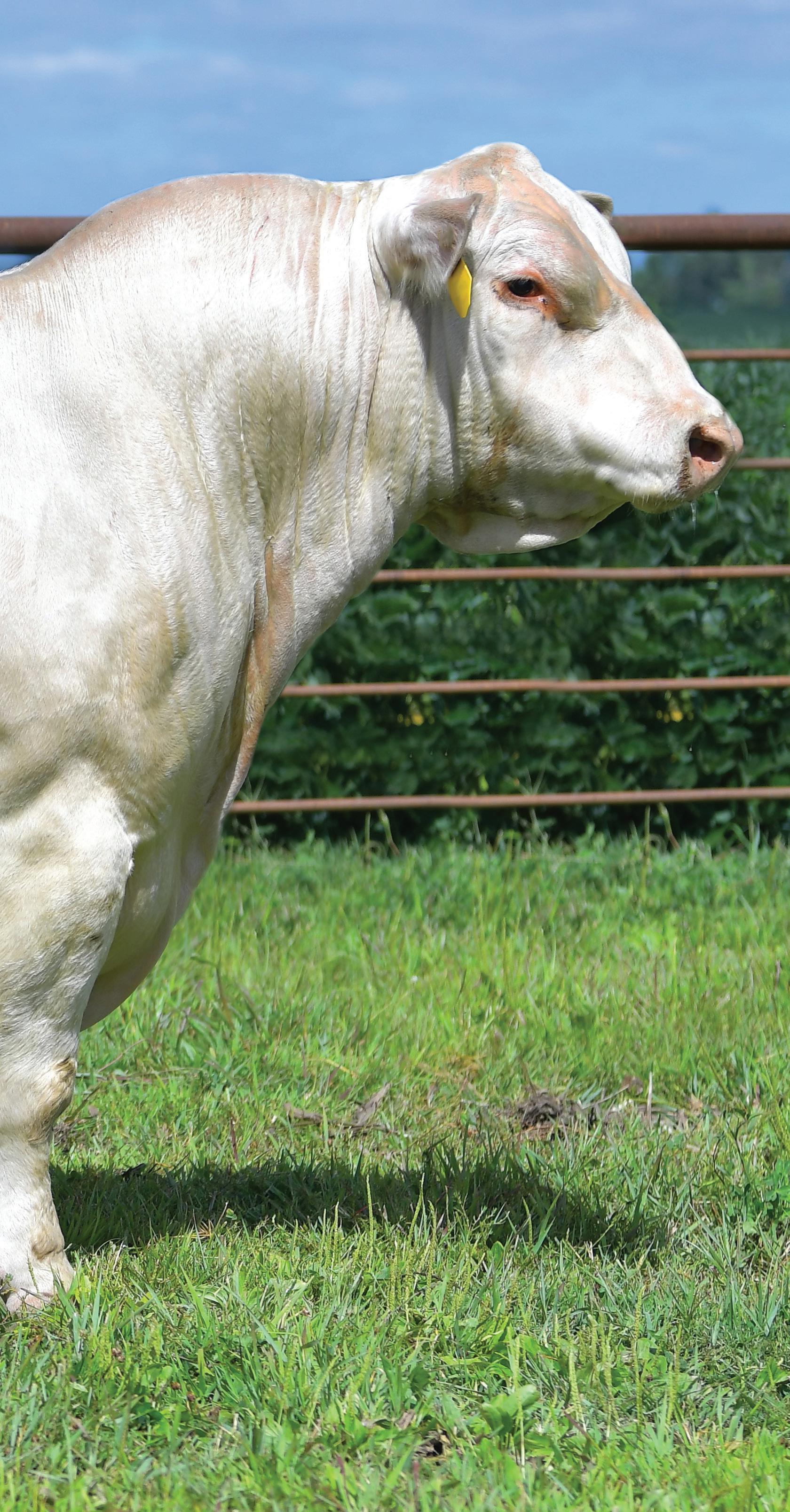 WCR Bold Move 168 P was just the sale featured herd bull topping the USA Charolais National sale in Denver Colorado. Bold Move offers excellent phenotype combined with an absolute star-studded genetic EPD profile. He also comes from one of the most prolific cow families at the WCR program, a large Charolais operation that is international known and respected. Bold Move ranks in the Top 35% in 9 different traits, Including the Top 1% WW , Top 1% YW Top 1% TSI. Bold Move is so unique as he has the extra good looks combined with a staggering EPD profile. A pedigree that is an outcross to many in the entire charolais breed as well as a negative -1.6 BW epd and 80lb actual birthweight. Bold Move can end your search for something different to use in your AI program on your heifer pen for 2023. Semen is stored at Alta Genetics.