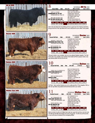 Here is the only black bull in the offering and he is a good one! Out of Spring Creek All In, this guy has tons of hair, big ribbed and is sure to add pound to your calves. Homo polled.