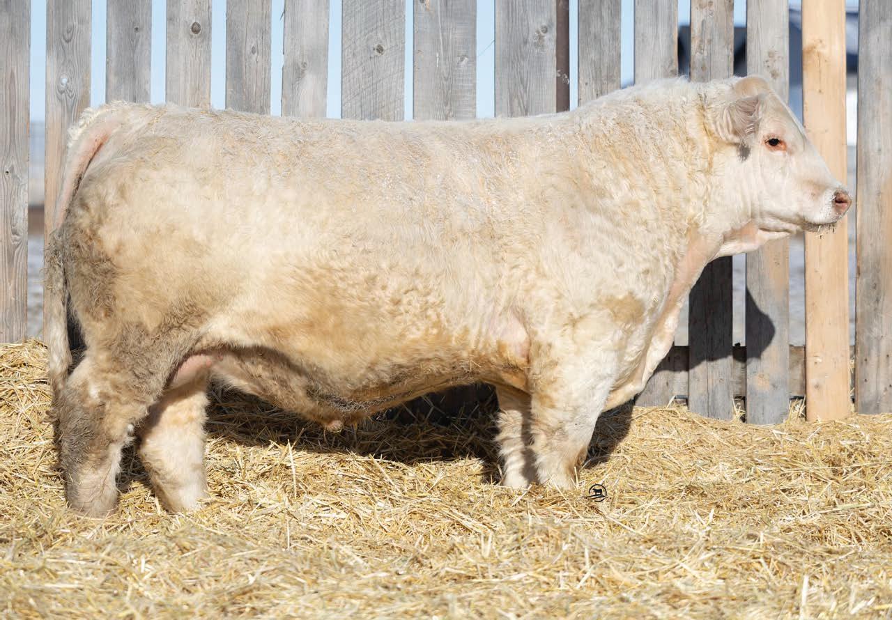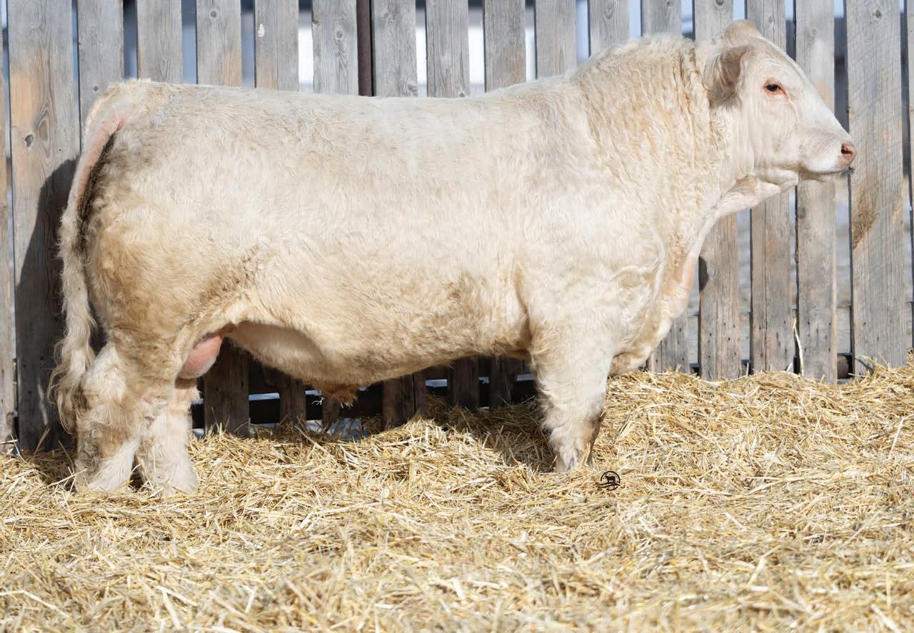 Badlands was the high selling bull in our 2024 bull sale, selling to Ferme Louber in Quebec and Valleys End Charolais here in Saskatchewan. He has proven himself and surpassed all of our expectations, calving exceptionally well with above average growth. His EPD profile has him in the top 2% for Birth Weight, top 4% for Calving Ease, top25% for Weaning Weight and top 5% for Yearling Weight. Top 1% for Terminal Sire Value.