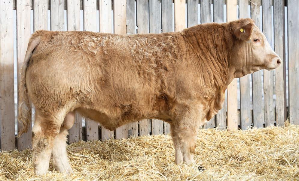 Lego exhibits wonderful muscle pattern and thickness, the type that we need to sire top-end bulls to produce industry leading feeder calves. He’s passing along the muscle expression, hair and attractive profile to his offspring. If you are looking for tan bulls to add some pigment the Lego sons will offer up the colour in a hairy, long bodied moderate framed package! Top end calving ease with better than average growth. Top 2% for Terminal Sire Index.