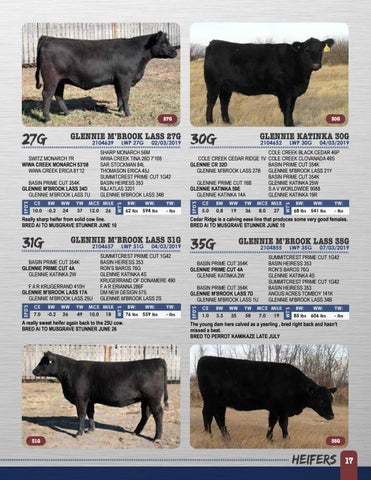 SUMMITCREST PRIME CUT 1G42 BASIN HEIRESS 353 RON’S BAROS 76G GLENNIE KATINKA 4S SUMMITCREST PRIME CUT 1G42 BASIN HEIRESS 353 ANGUS ACRES TOMBOY 141K GLENNIE M’BROOK LASS 34B 19