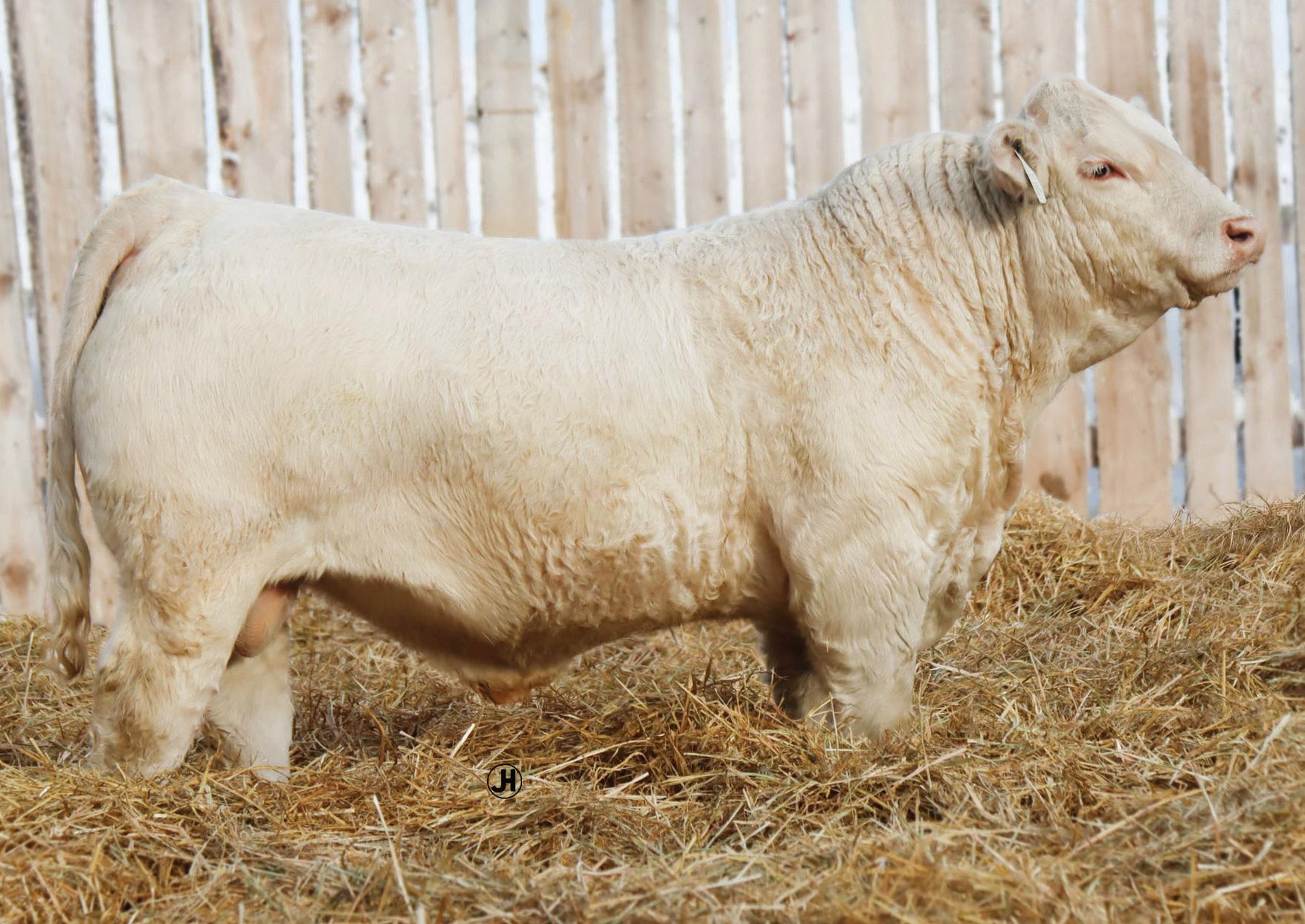 Performance, hair and length are things we as beef producers all want in a herdsire. This guy has all of that and more. Troubadour has proven to add hair & performance along with great feet. His mother has proven she can do it before, producing an Agribition class winner, a feature bull to Rod McLean last year and she herself is a maternal sibling to last year’s High Seller to Oakstone Land & Cattle. She is sired by the WCR Commissioner bull who is the easiest calving Charolais bull we have ever used with short gestation and high vigour. Bravo is built to be a legitimate Herd Bull! He has tons of hair, extra length and a proven pedigree on both sides. Top 1% for WW and YW, here is a bull with a ton of upside! HOMO POLLED