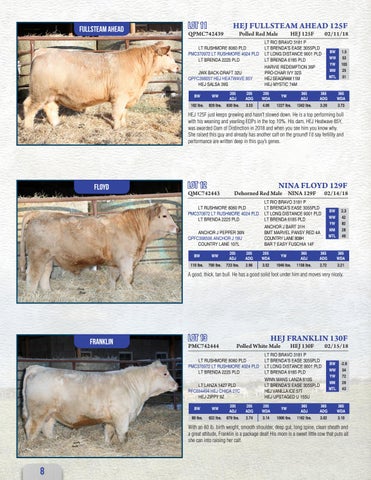 LT RIO BRAVO 3181 P LT BRENDA’S EASE 3055PLD LT LONG DISTANCE 9001 PLD LT BRENDA 6185 PLD HARVIE REDEMPTION 36P PRO-CHAR IVY 32S HEJ SEAGRAM 11M HEJ MYSTIC 74M