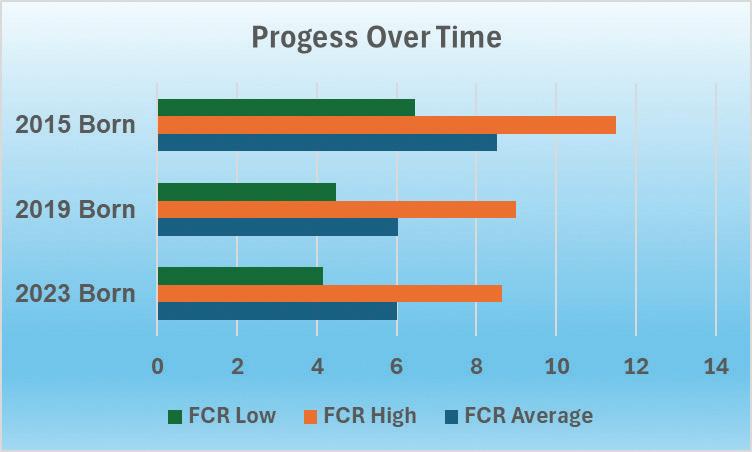 • In the first 4 years of testing of our Simm/Angus progeny, our F:G ratio dropped 29% on cattle tested at similar weights and time of year,