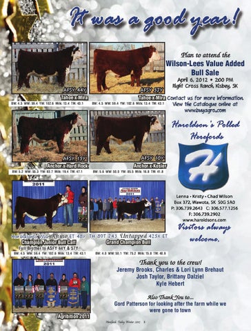 Gord Patterson for looking after the farm while we were gone to town Herefords Today Winter 2012 3