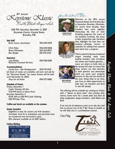 1:00 PM, Saturday, December 2, 2017 Keystone Centre, Canada Room Brandon, MB Sale Staff Brent Carey, Auctioneer