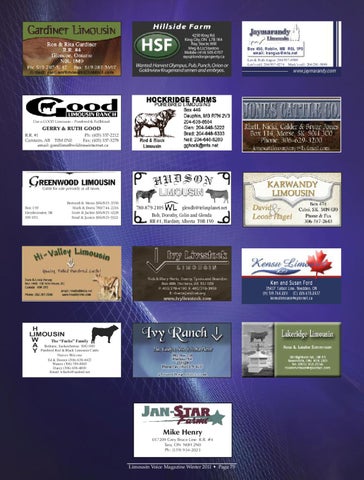 H LIMOUSIN W The “Fuchs” Family A Bethune, Saskatchewan S0G 0H0 Y Purebred Red & Black Limousin Cattle Visitors Welcome Ed & Doreen (306) 638-4422 Warren (306) 789-8863 Darcy (306) 638-4800 Email: wfuchs@sasktel.net