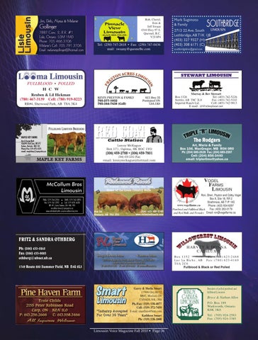 McCallum Bros Limousin PAUL: 519-764-2354 DAVE: 519-762-5095 Fax: 519-762-2392 Cell: 519-870-5638 RR #1, Iona Station, ON N0L 1P0 mccallum.bros@sympatico.ca www.elitebeefcattle.com/mccallumbros.htm
