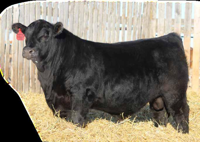 selling outcross bull in our 2024 sale to Bennett Stock Farms and Long Lane Angus. On the dam’s side, one of those productive young Retrospect daughters that had a $15,000 Red Resource son to Hawk Ranching, AB, in last year’s sale.