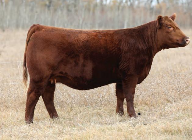 If you know me, you know I’m a sucker for two things; dark cherry red cattle, and anything to do with 42A bloodlines, so it is no question why 104 has always been a personal favourite. Lucky Strike has been the talk of the town ever since he was a calf, and his progeny speak for themselves. Get in on one of the up-and-coming sires in the breed with this stylish, elephant-legged, soggy-made cow prospect with an exceptional udder development.