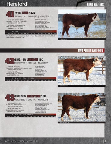 Smooth polled. This bull is from a first calved heifer and has an 80 pound birthweight. His sire is the $100,000 Denver high seller Churchill Stud 3134A STUD 137C