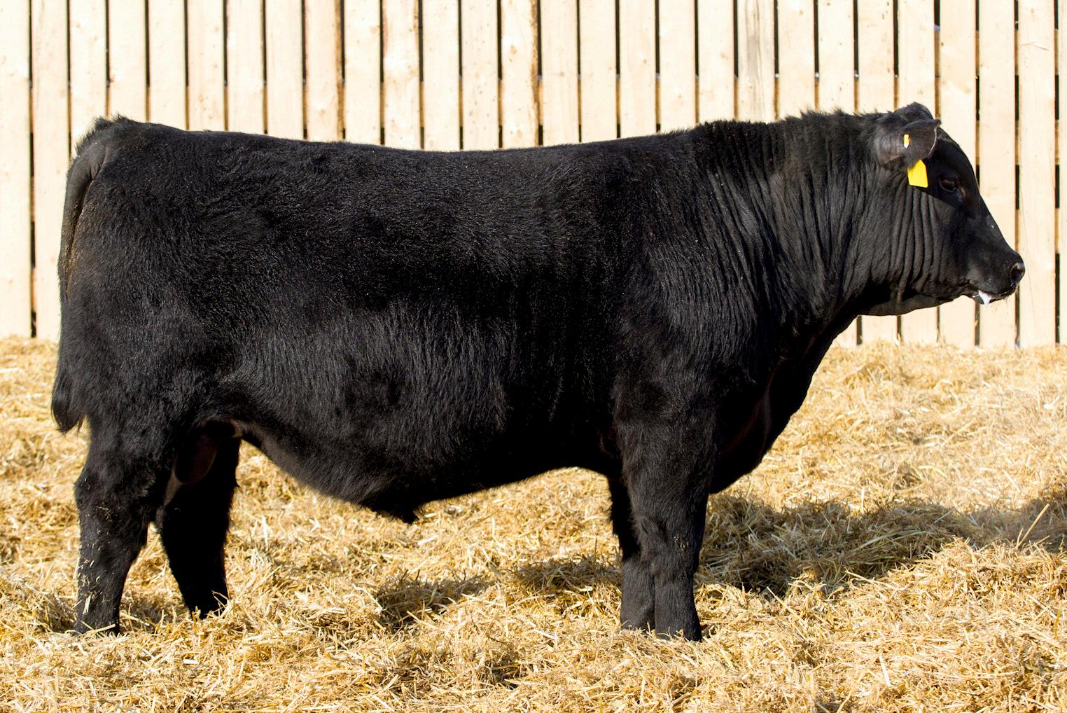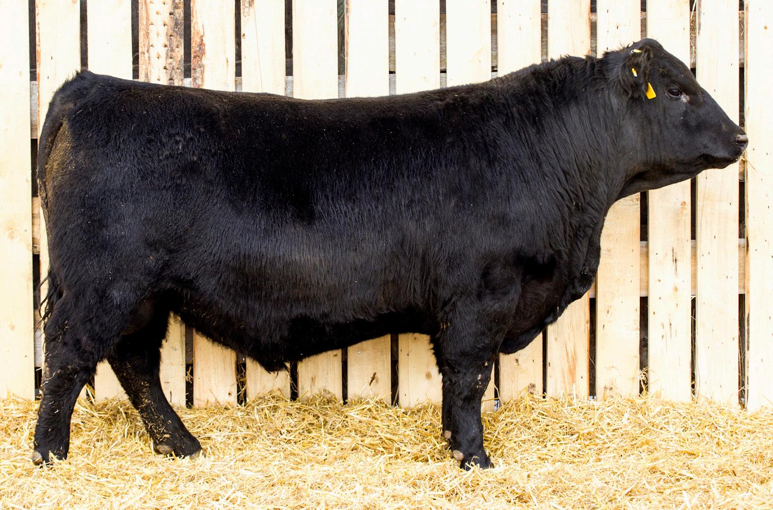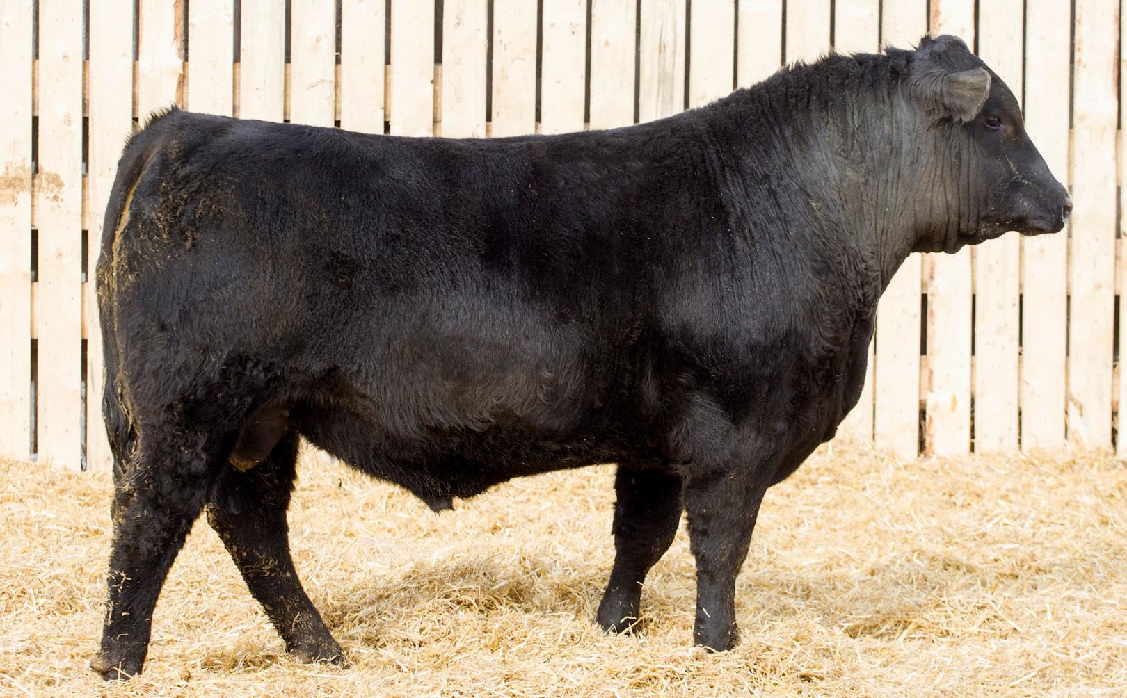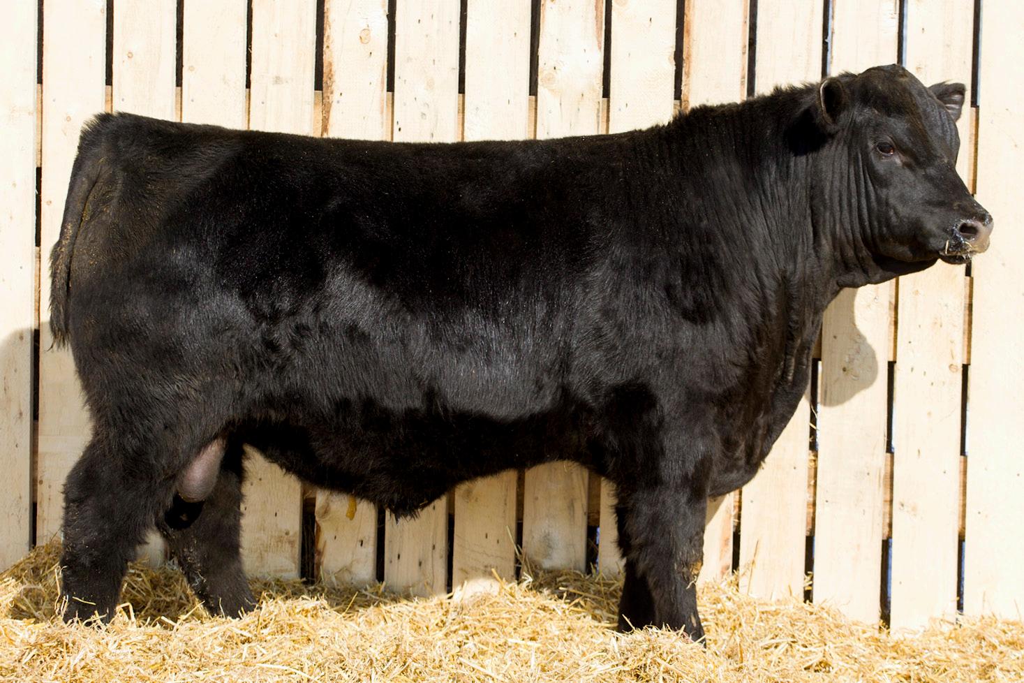 A stylish, long bodied, smooth shoulders, and an easy moving bull.