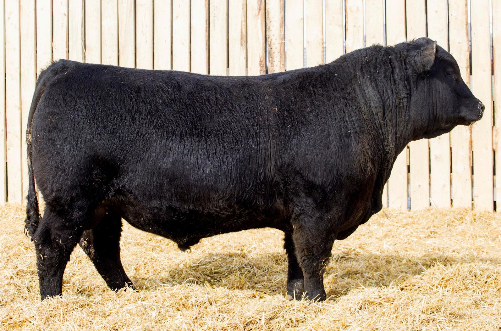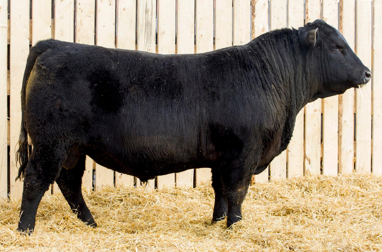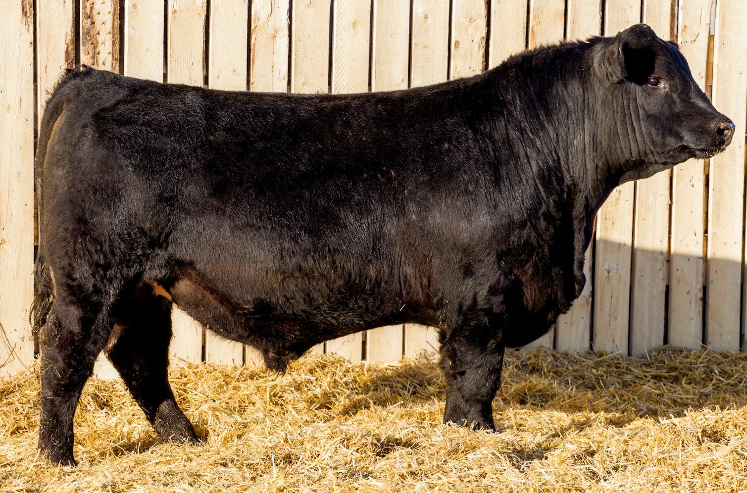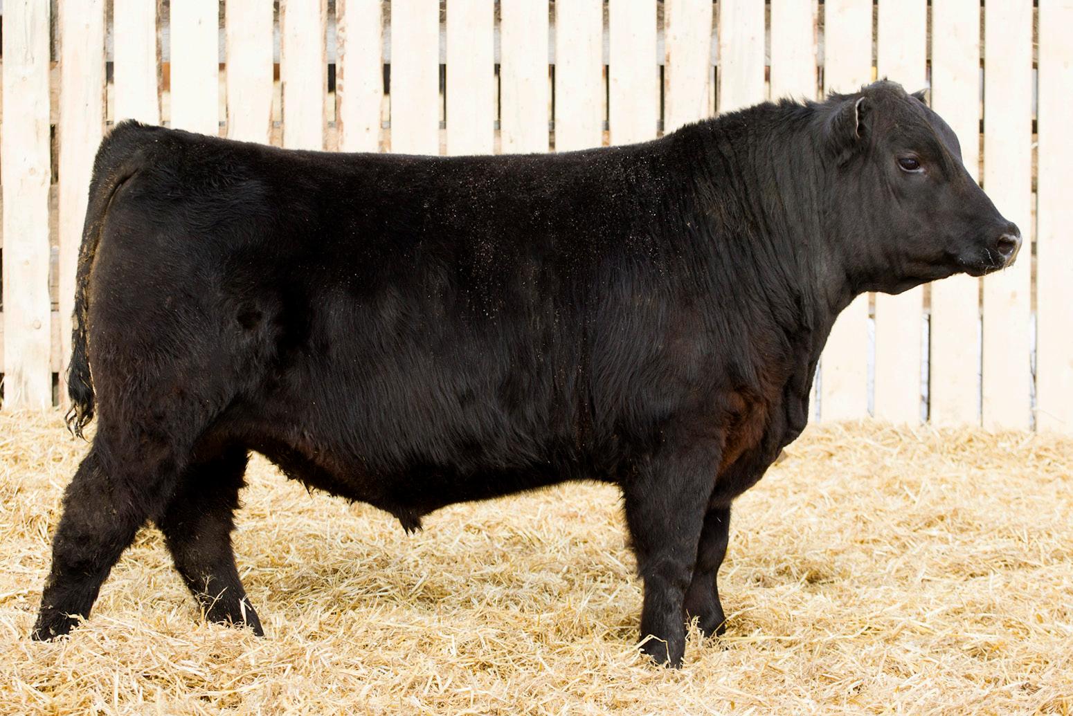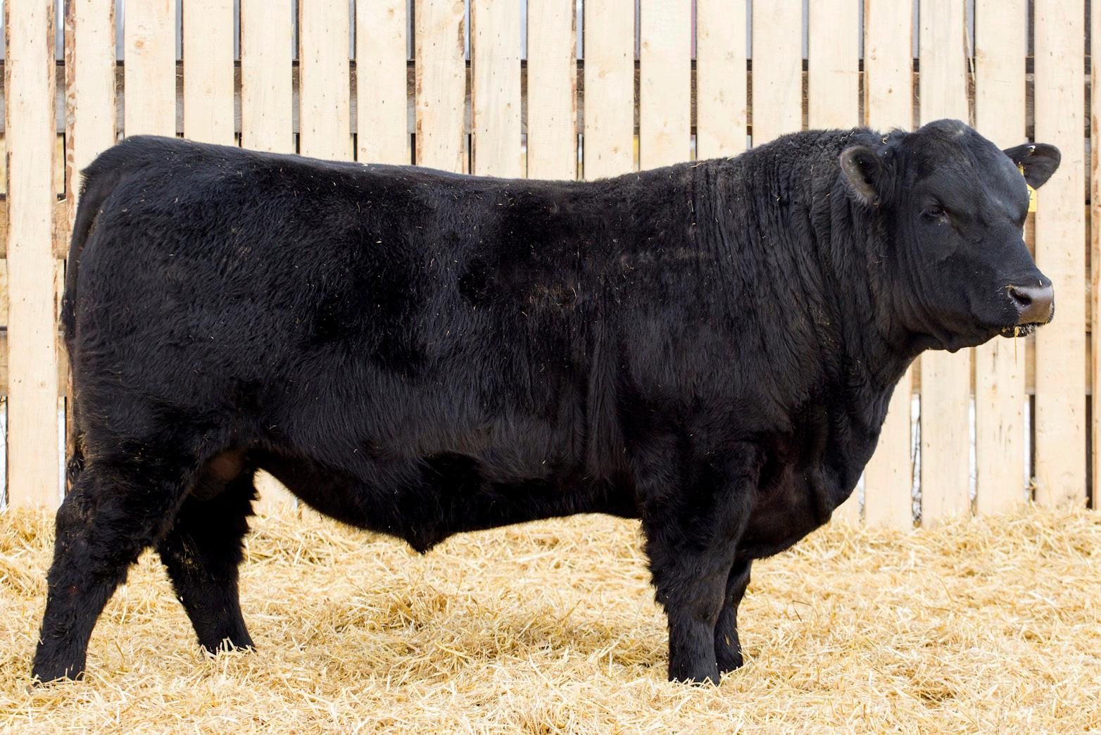 A stylish, long bodied, smooth shoulders, and an easy moving bull.