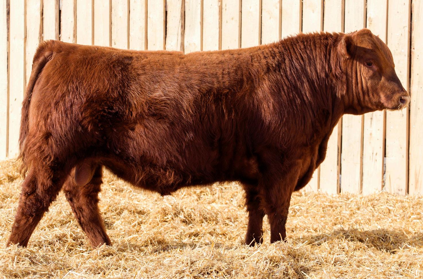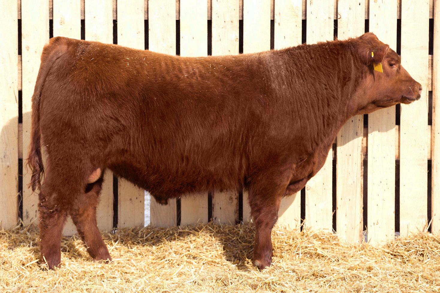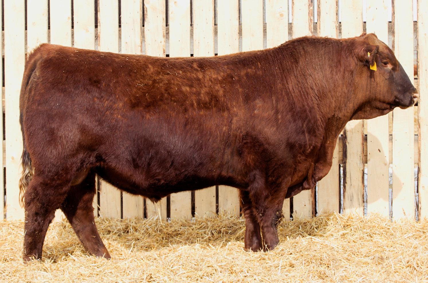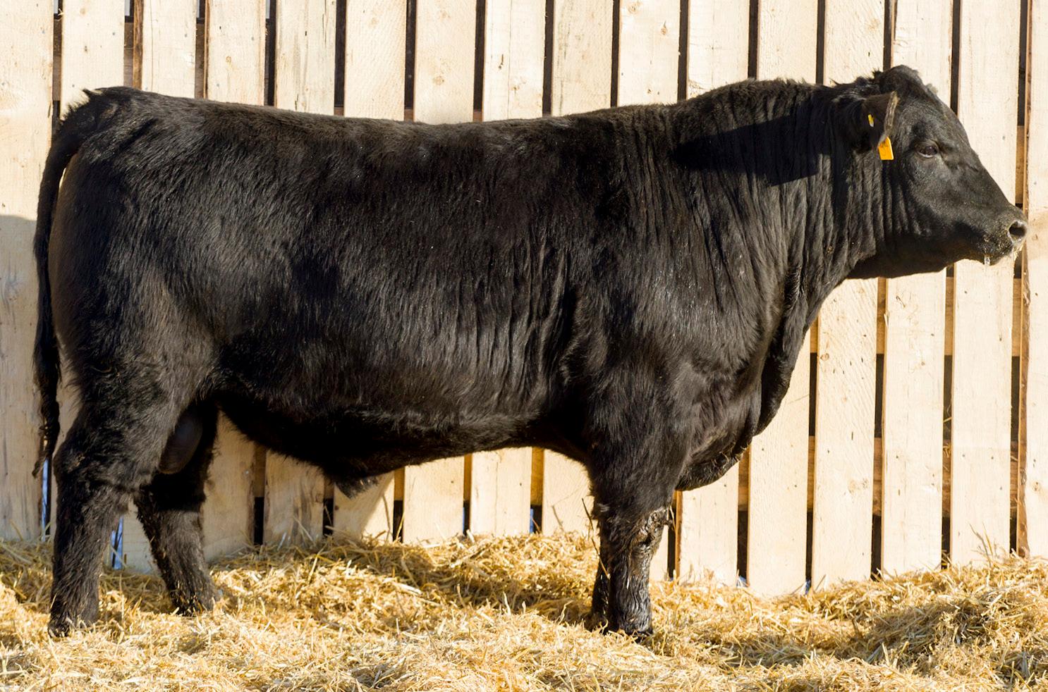 A stylish, long bodied, smooth shoulders, and an easy moving bull.