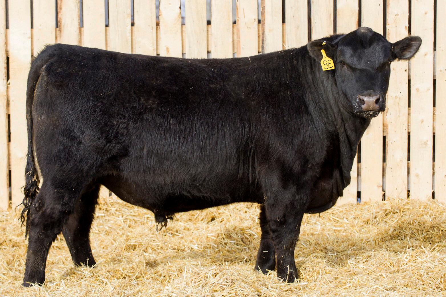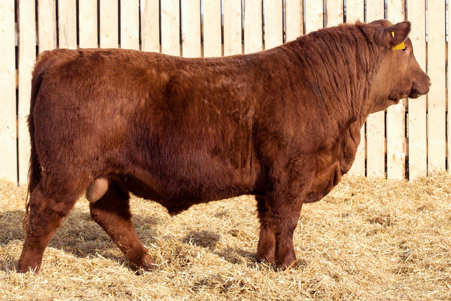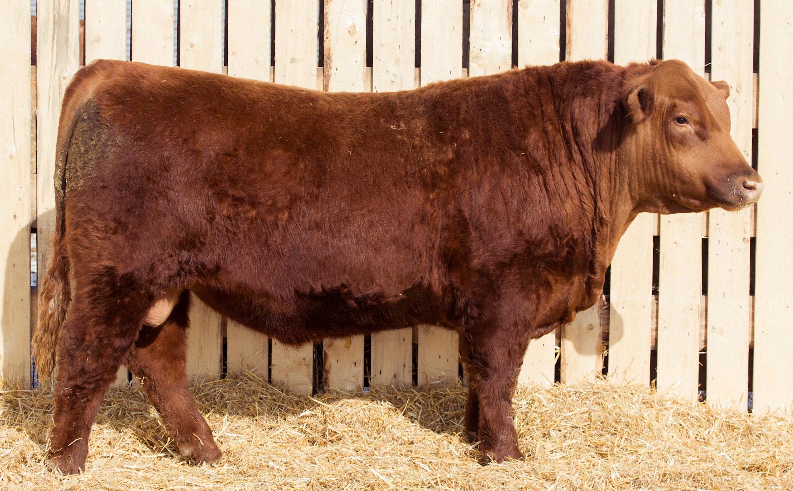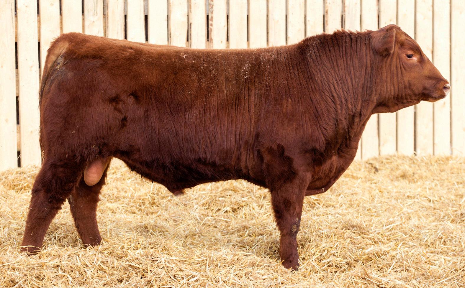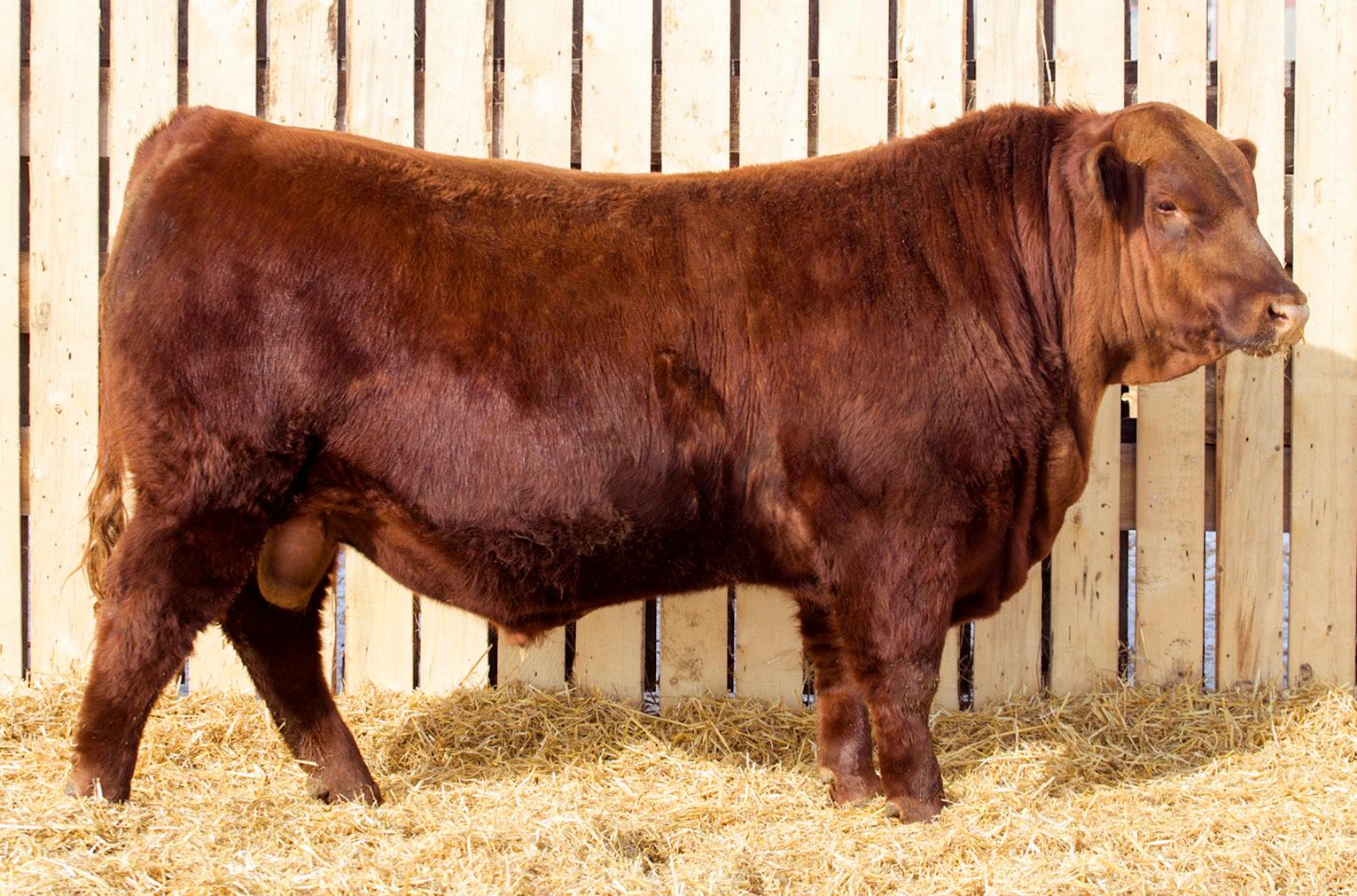 A stylish, long bodied, smooth shoulders, and an easy moving bull.