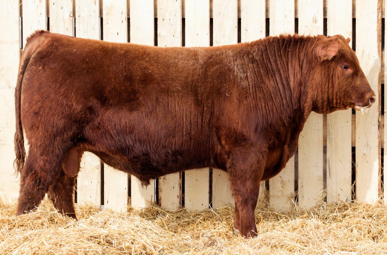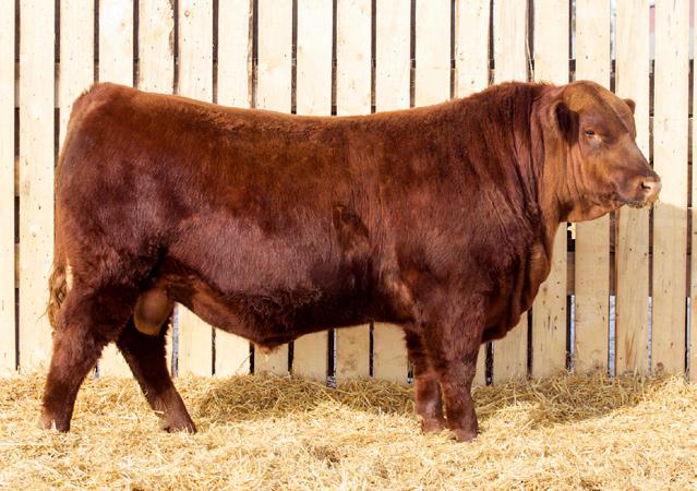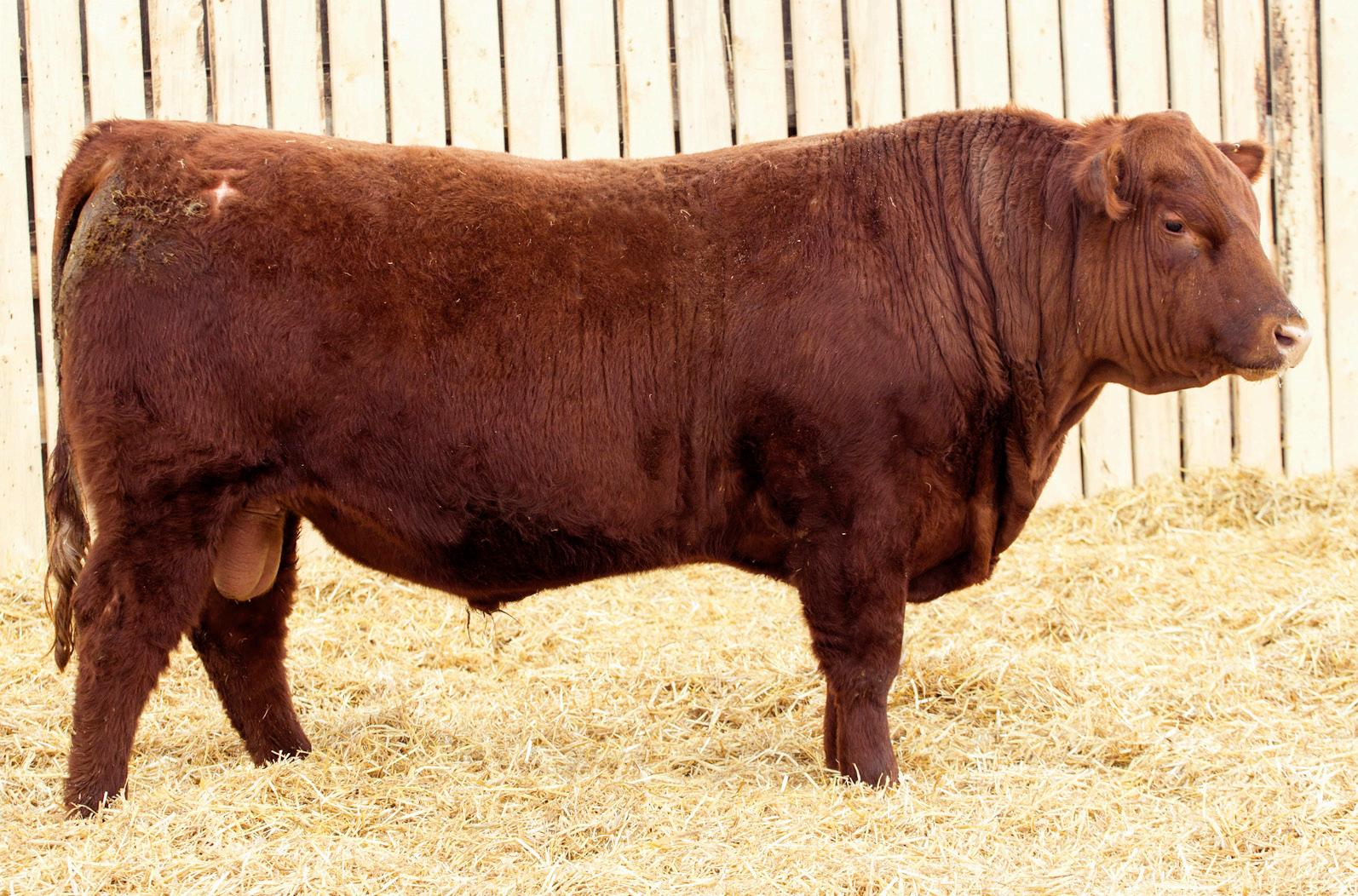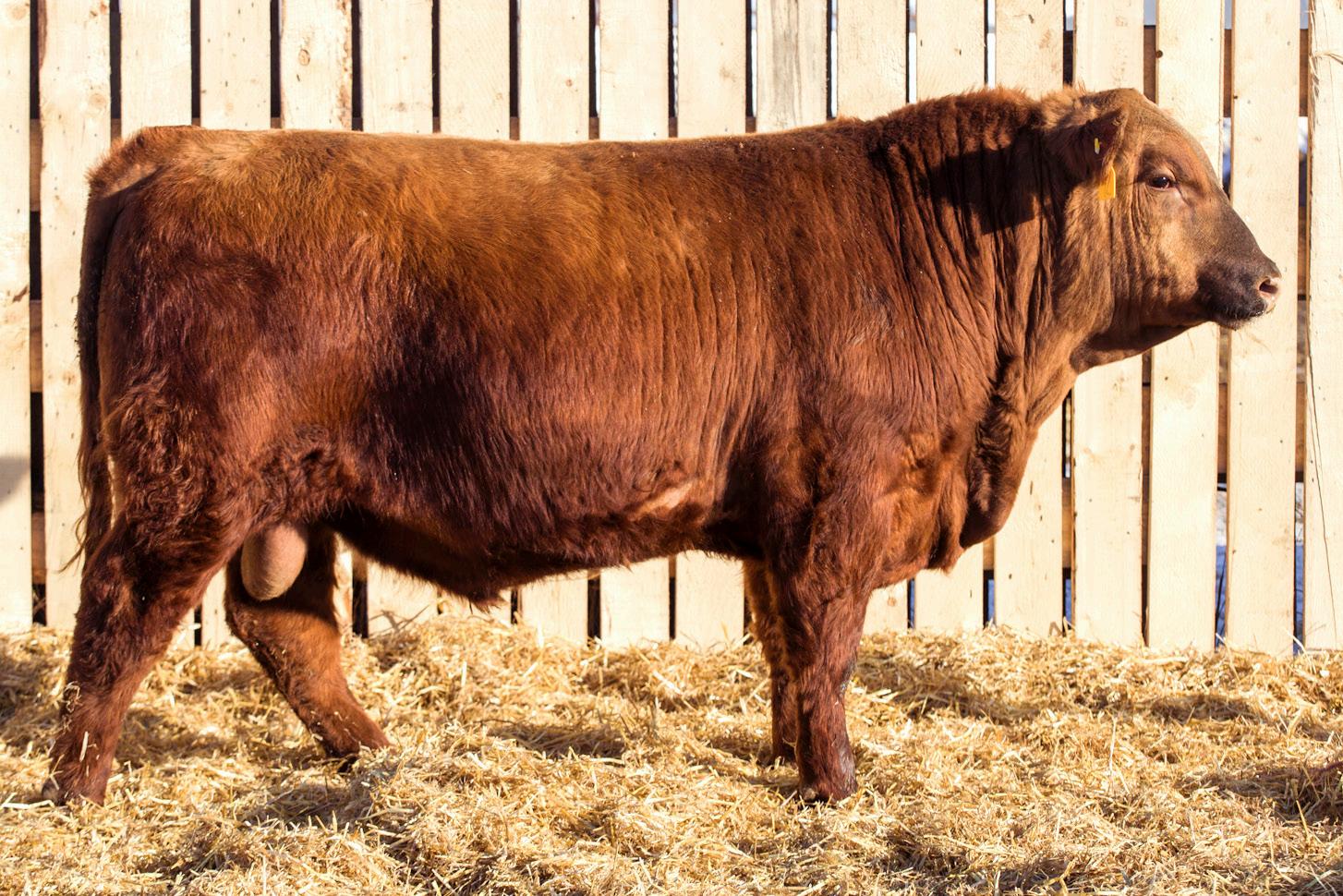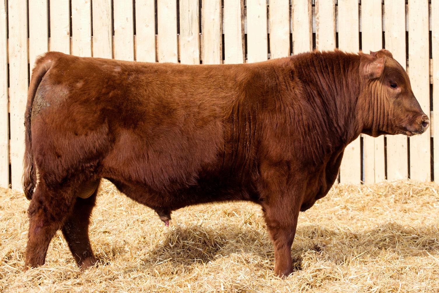 A stylish, long bodied, smooth shoulders, and an easy moving bull.