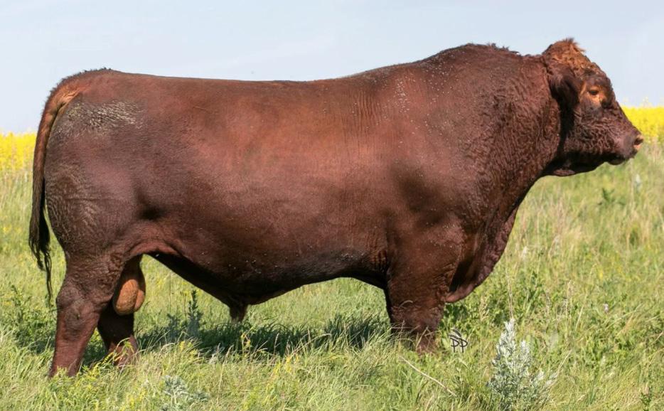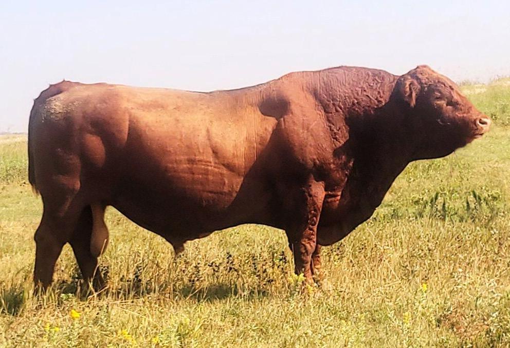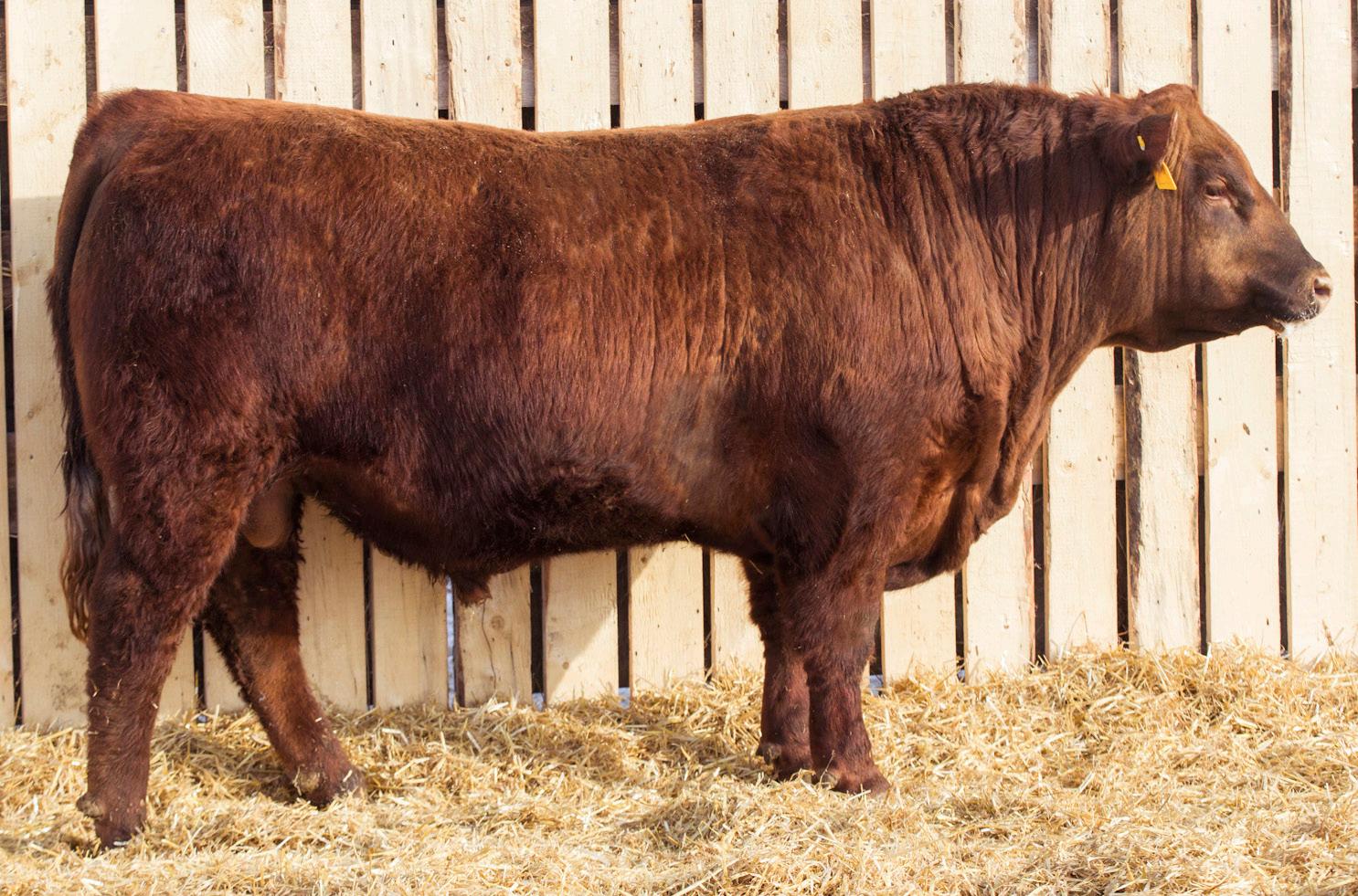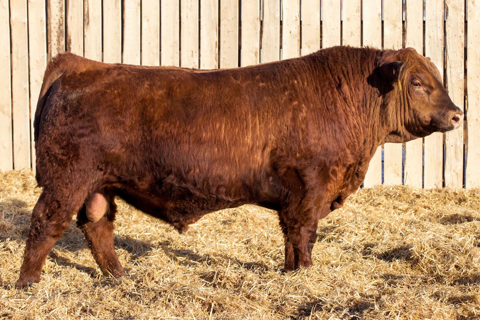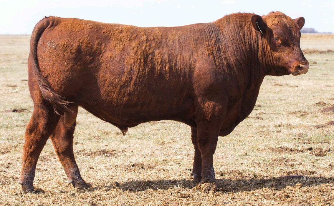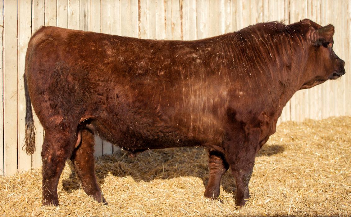 A stylish, long bodied, smooth shoulders, and an easy moving bull.