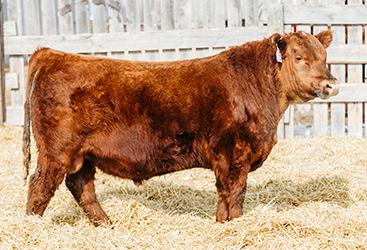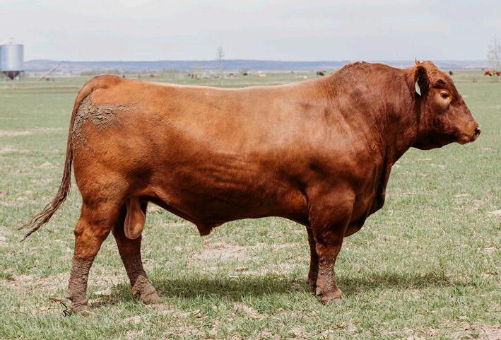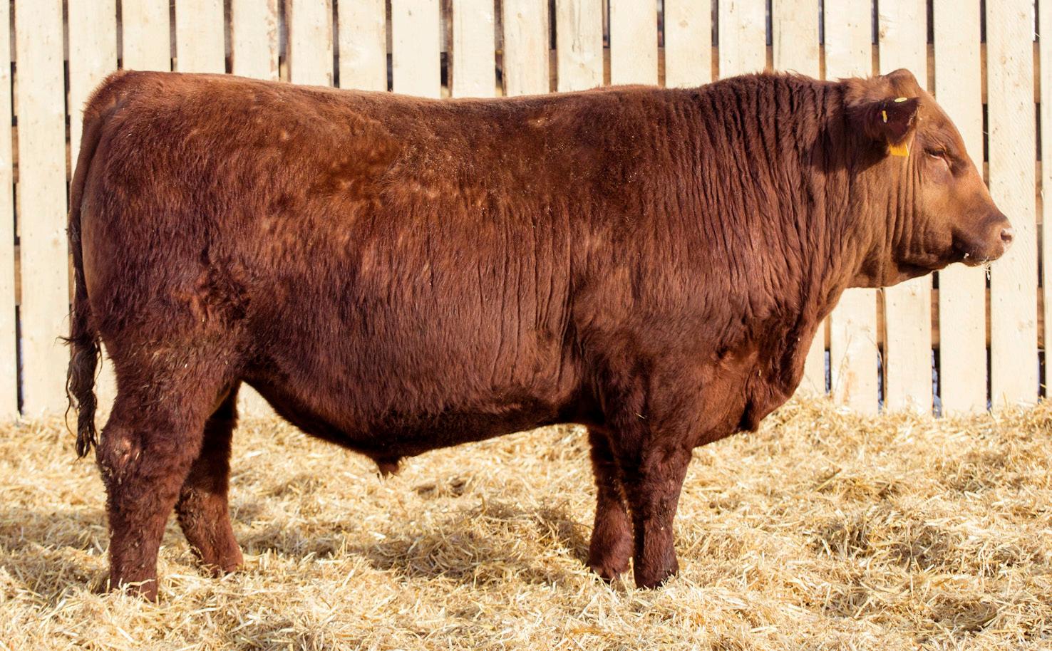 We loved Lot 3 in last year’s sale (who sold to Cornerglen Ranching) so much; we decided to recreate the same bull! 43N is built like a brick shit house! He’s dark cherry red with a clean Angus style head. His mother is a cow that you’ll notice touring our herd. Other brothers have sold to Nolan and Kate Mudrewich and Midpoint Farms.