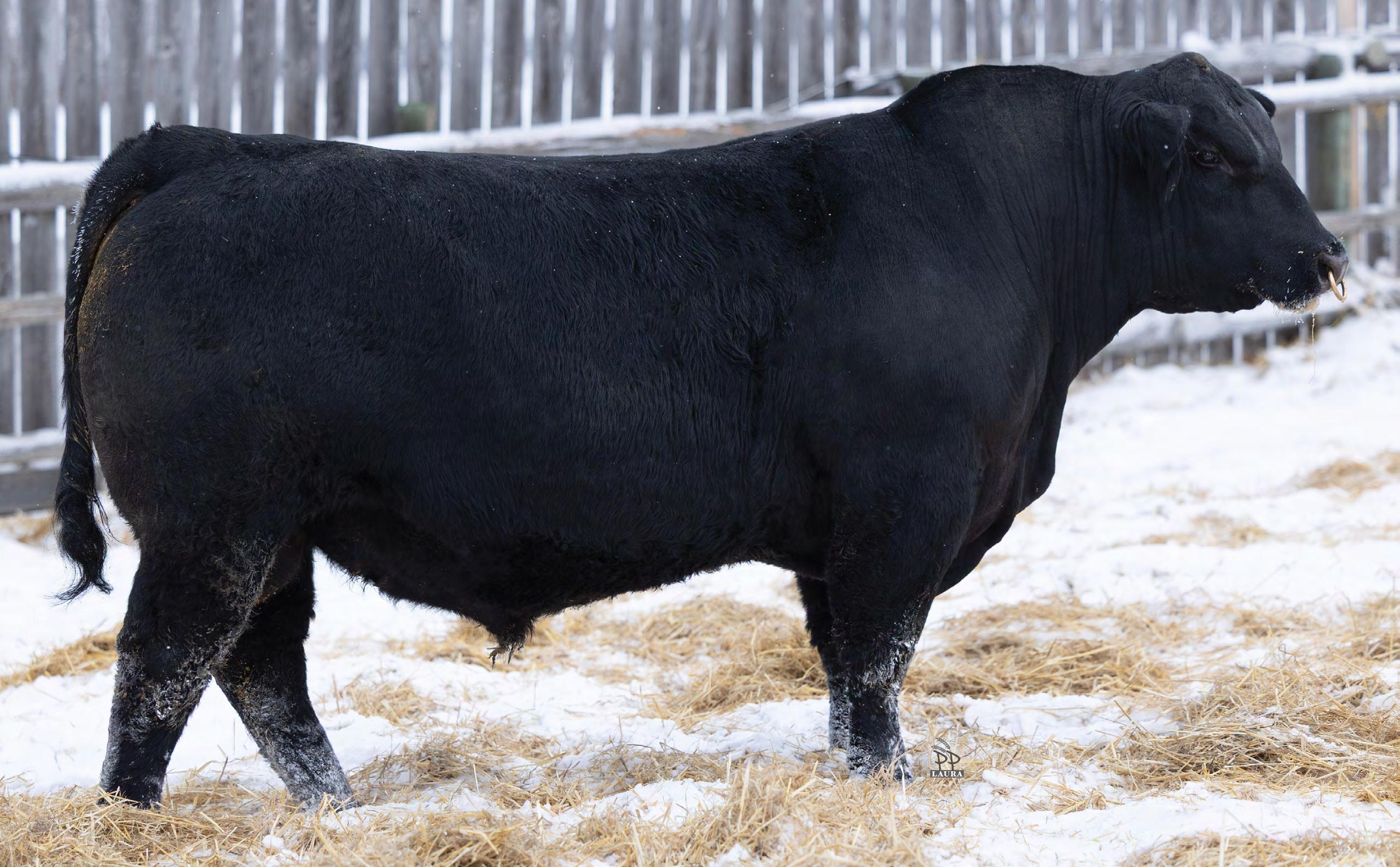 This crowd favorite and top-selling bull from the 2019 Ellingson Angus Sale is regarded as one of the greatest sires to emerge from the Ellingson program. Profound sons are set to headline the 2022 Ellingson Angus Sale. Weaned off his two-year-old dam at 930 lbs., he matured into a powerful, muscular, high-volume individual with exceptional foot quality. His first calf crop was notable for its muscle shape, body depth, thickness, and superior foot quality. This group comprised the largest and most consistent sire cohort ever assembled by a single sire for a Peak Dot Ranch sale.