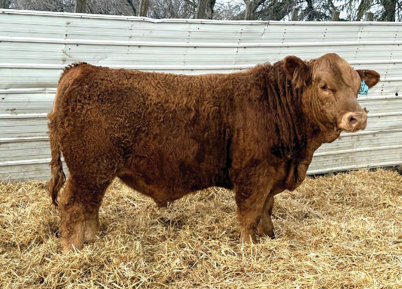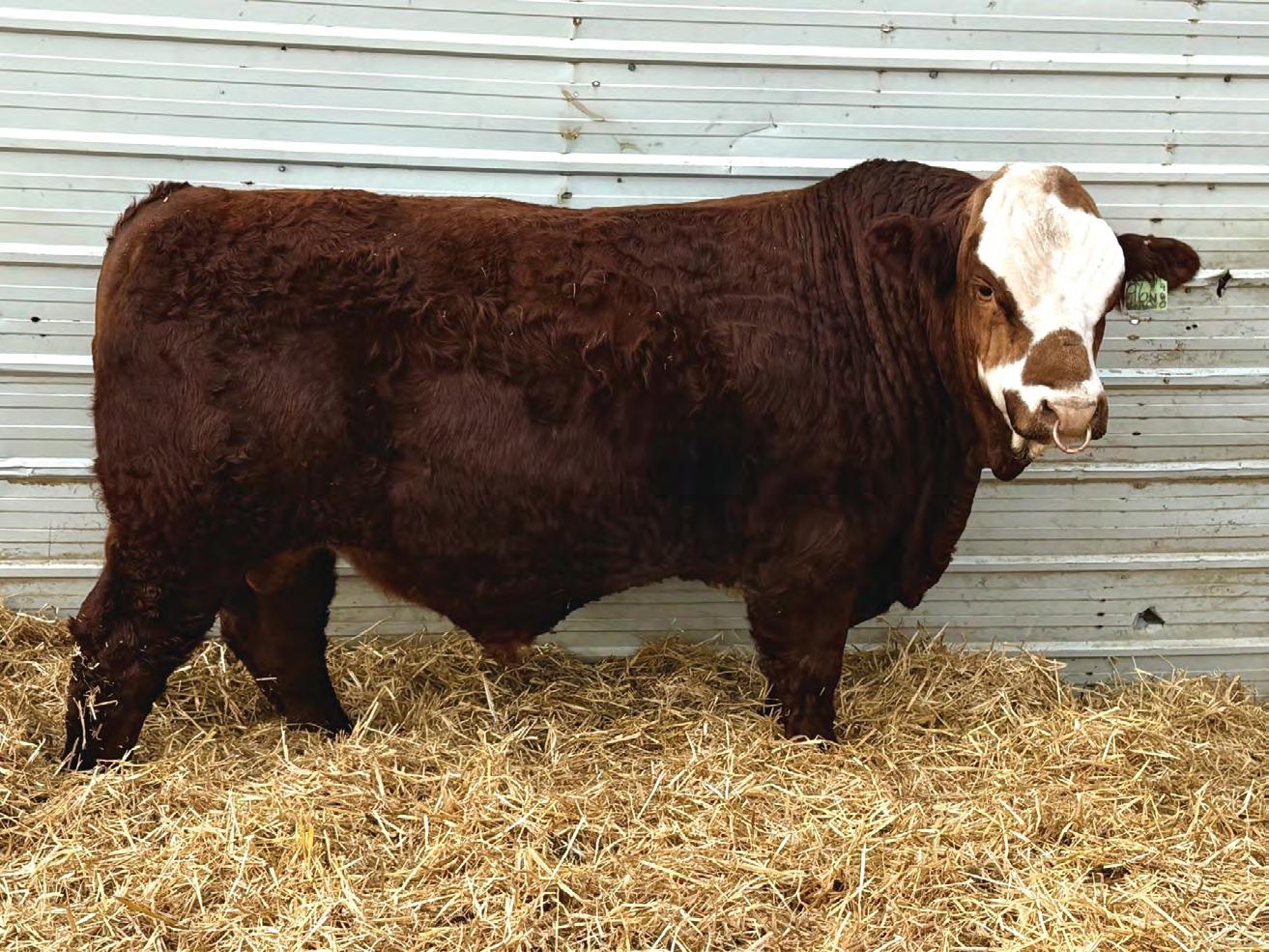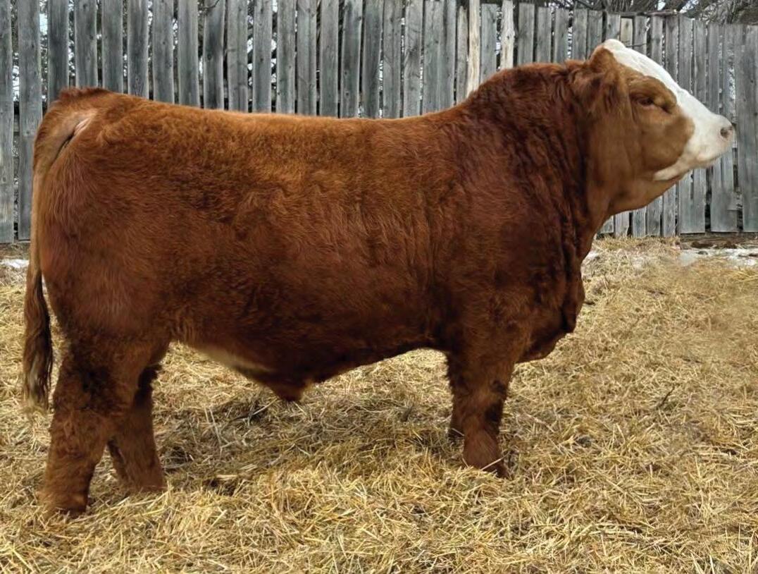The first three are three full ET sibs that we are excited about. Grandpa kept telling us that he couldn’t wait for these calves to come because he knew they were going to be great and man was he right. Black Gold/ GW Reddington 113K has sired our largest group of red bulls. This bull has produced excellent offspring for both sexes. His first calf in our selection BVL Nascar 1N comes from Sawyer Morrison, a young and hardworking lady that’s passionate about Simmental cows and building her own herd. She operates with her family under Boyne Valley Livestock.