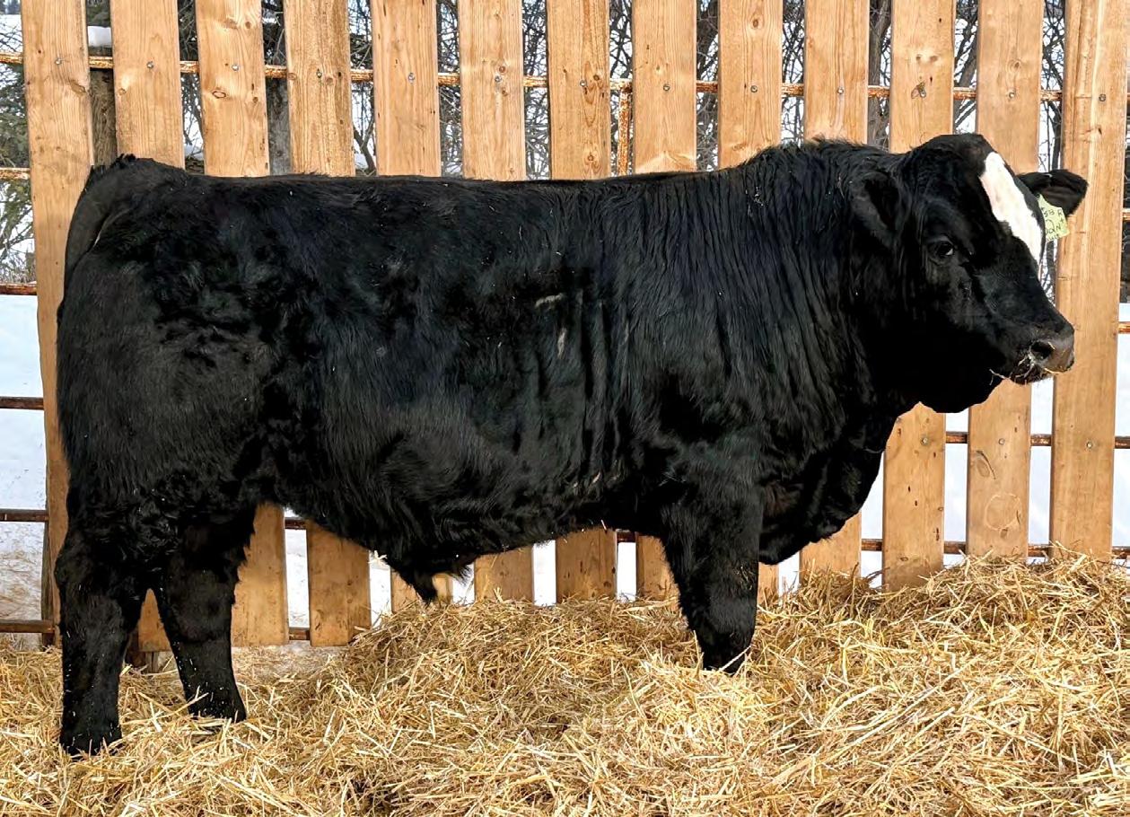 Nick is a long bodied black blaze face bull. He’s got lots of performance and eye appeal. He is backed by a great female. His first calf dam is arguably one of our best young females. She’s a powerful female that milks good and carries herself extremely well. Nick’s sire Legend is a calving ease specialist that once we saw him, we knew we had to use him in our herd.