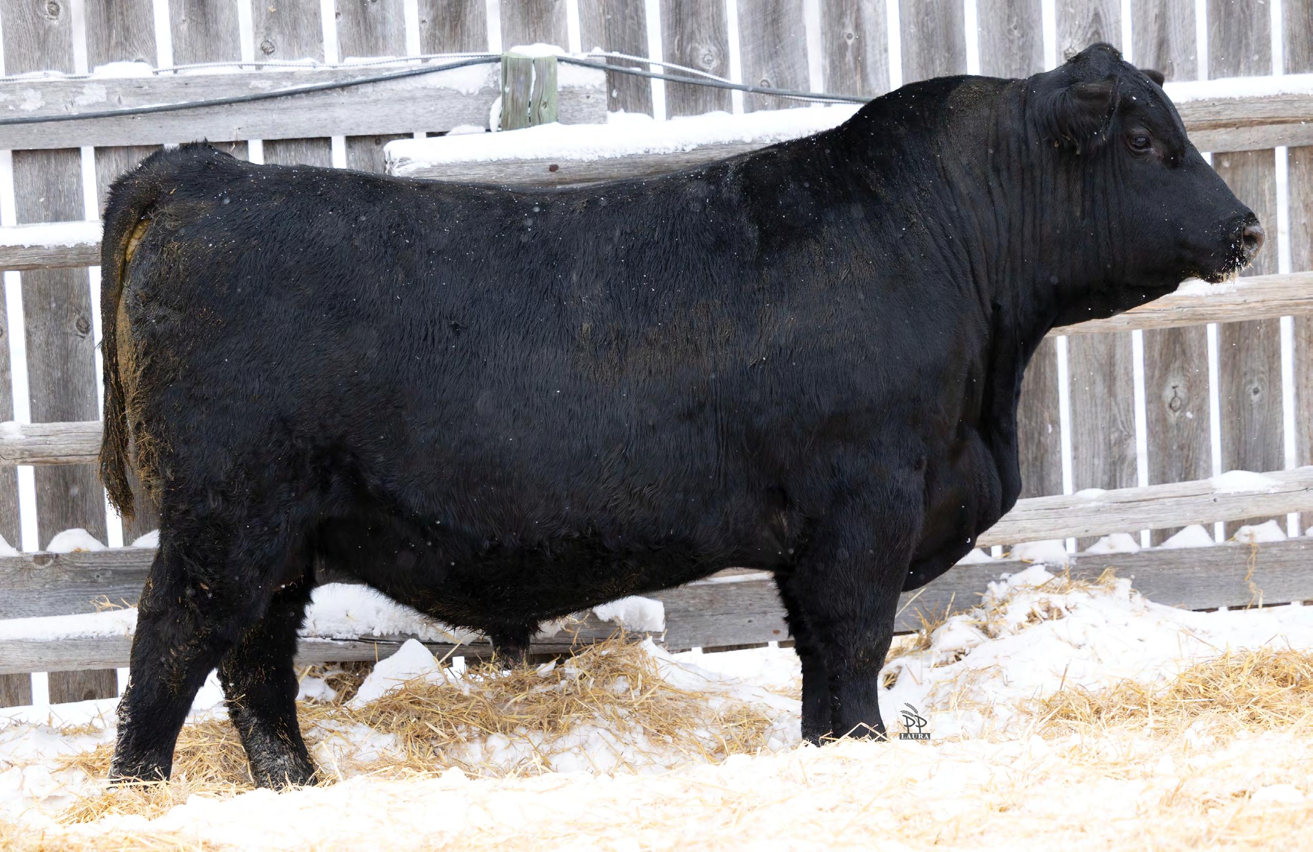 Trendsetter has been a phenomenal breeding piece we were excited to add to our herd. Being out of one of the most influential Angus cows in the Industry Brooking Beauty 333, we knew he was going to add even more maternal power to our herd. We will be seeing his daughters in production this spring, and their udder attachments and teat size are looking near perfect. His sons are a very strong group offering power and shape, along with some calving ease genetics’ as well.