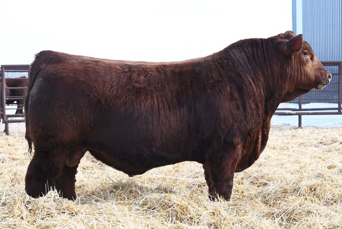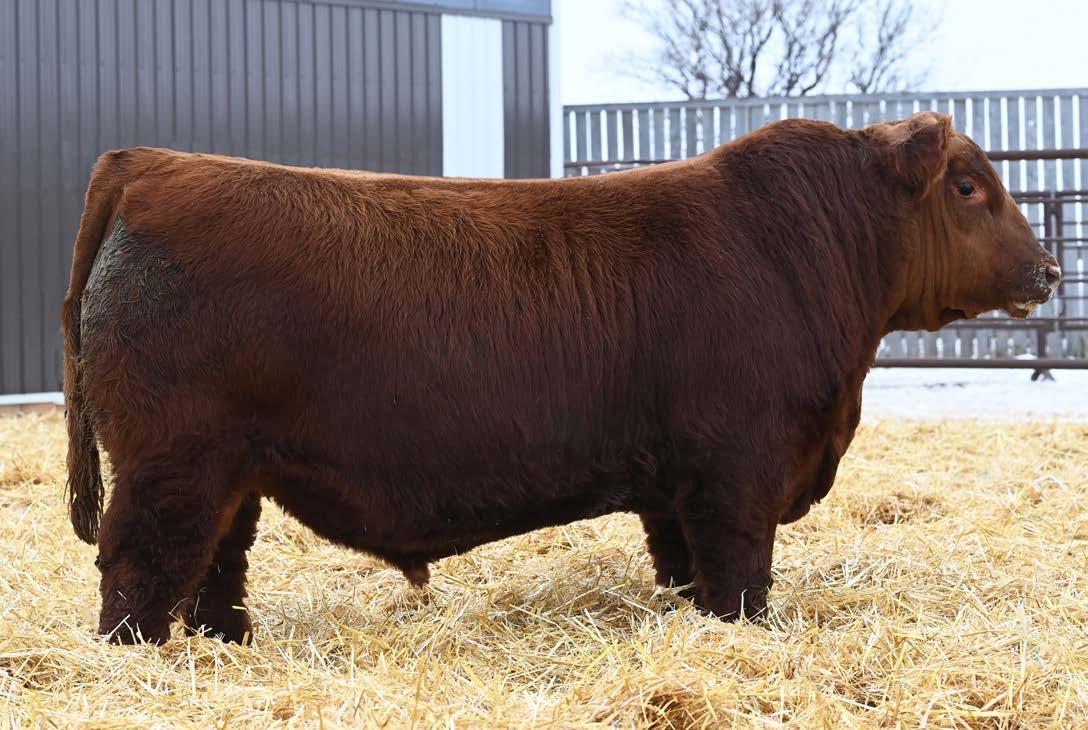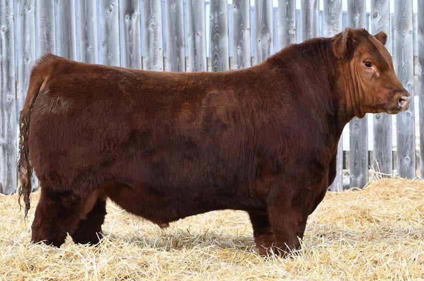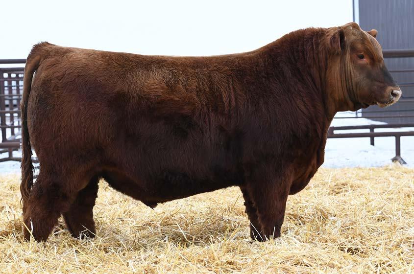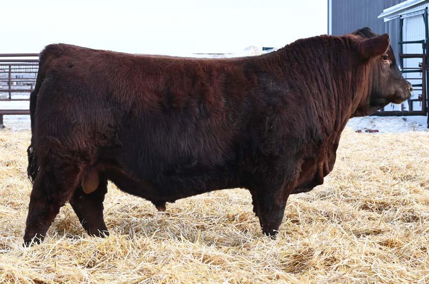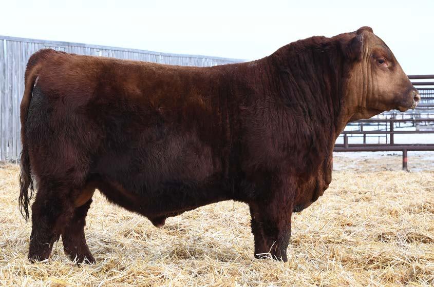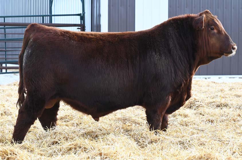 • Moderate birth weight, a front end built for calving ease (+15 CE) and plenty of shape from his shoulders back