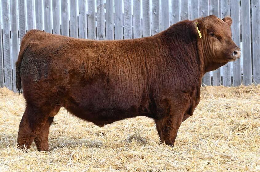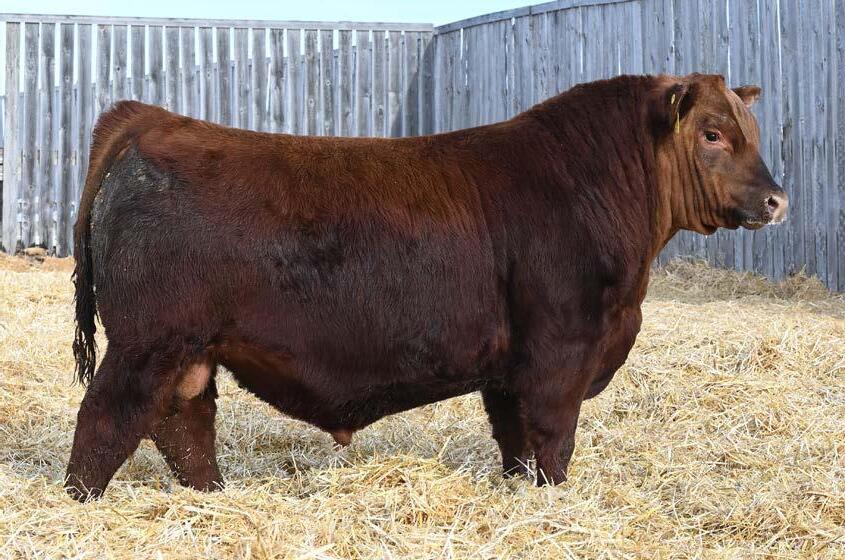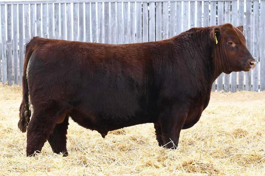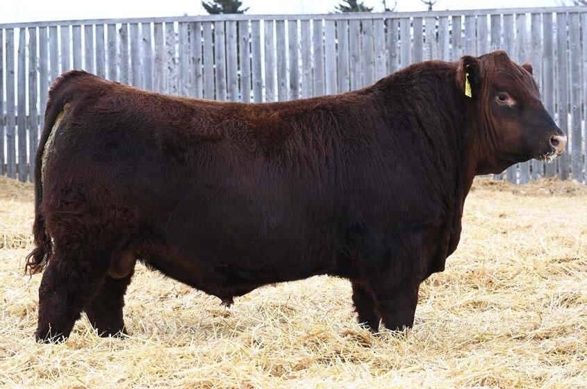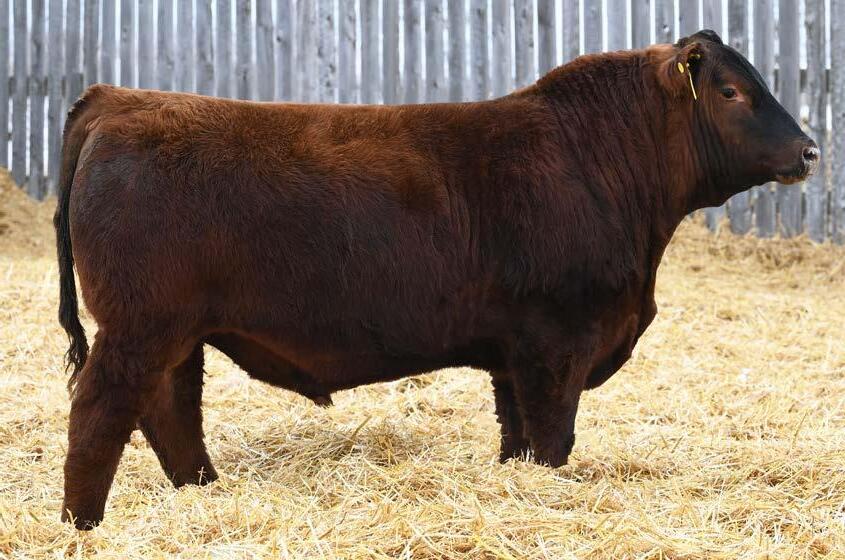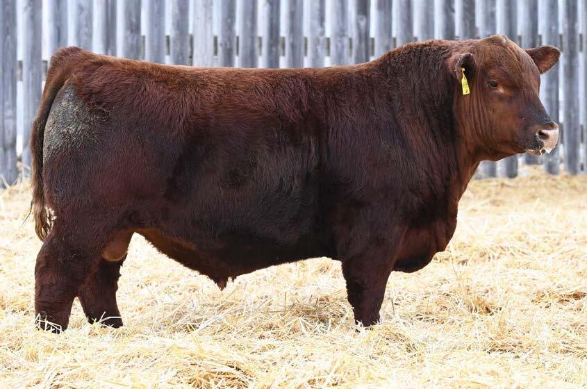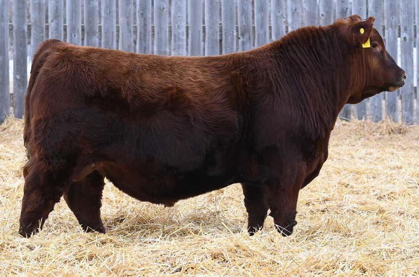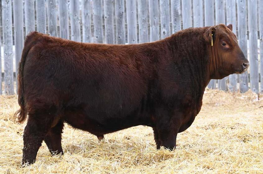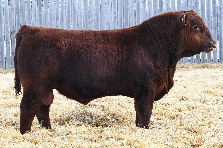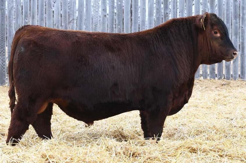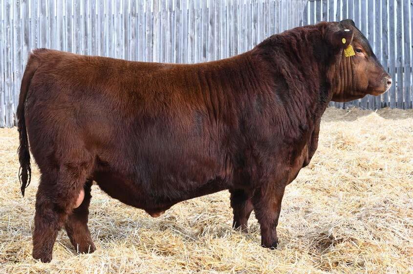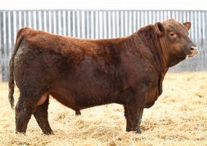 • An attractive patterned bull that’s as dark red as we can make one