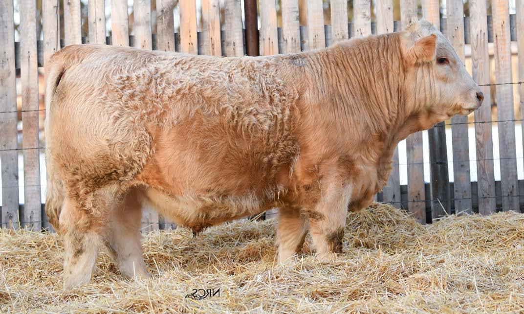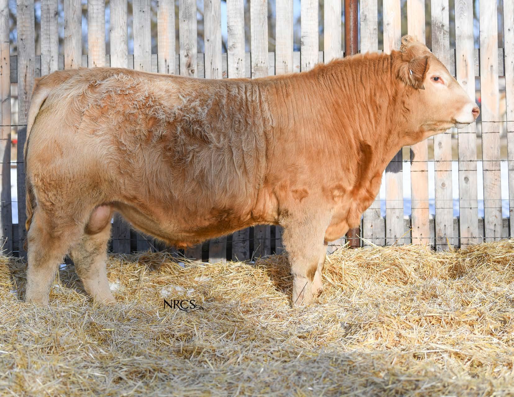 A tan Custom calf with loads of hair and guts. A bull that when you get behind him you can admire for his spring of rib and muscle shape.