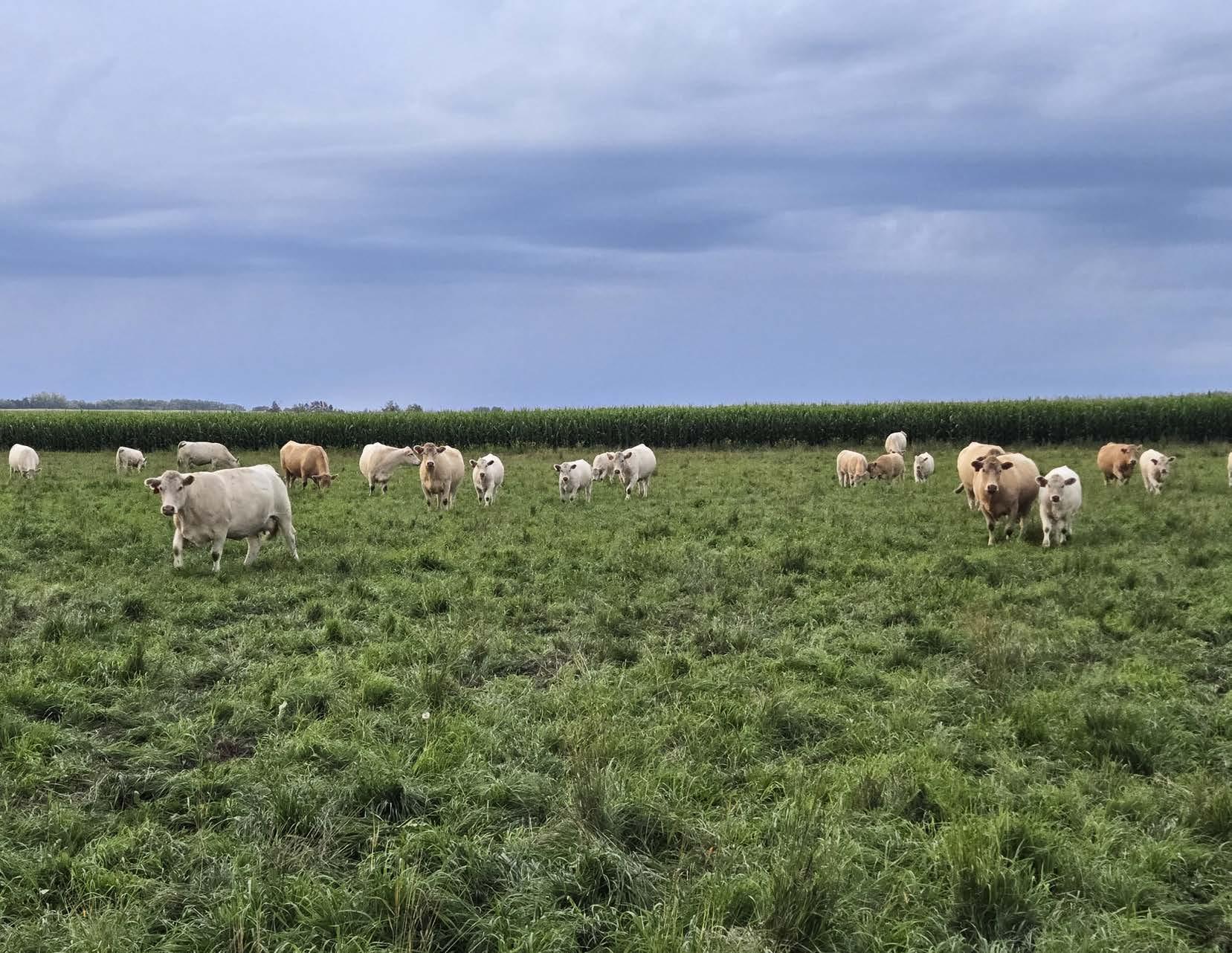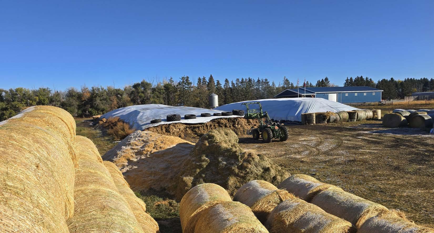 This season, we tried growing corn for the first time. Watching the crop thrive with ample moisture was exciting, resulting in an 18 ton/acre yield and high-nutrient silage. As a result, we have made some adjustments to our feeding program. After weaning, bulls received a TMR ration of barley silage/hay and whole oats. Beginning of December, we added corn silage and rolled barley. Currently, their ration is a TMR with half corn silage and half barley silage, mixed with ground first-cut hay, 7 lbs of oats, and 5 lbs of barley. Our goal is a steady 3 lb/day gain— the pen averaged 3.1 lb/day. We believe slow, steady growth promotes optimal health and structural longevity. It is always rewarding to hear from customers who still have a bull they purchased from us eight years ago!