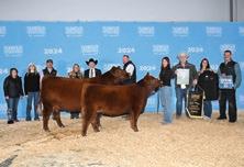 Red Wilbar Hennessy 3K is one of the most unique sires to ever come out of the Wilbar program. Aside from his dominating show career, Hennessy is a Grand Champion in the breeding field. His progeny are dominant amongst their contemporaries. Moderate birth, explosive growth to weaning and the ability to convert feed into pounds like no other sire we have used. He consistently sires dark cherry red color, extra bone mass, great feet with added heel and thick, deep bodied cattle. His first daughters will calve this coming spring and look very similar to Hennessy’s gorgeous dam. His progeny highlighted the spring bull sale season with a son commanding $75,000. Look for daughters highlighting multiple sales this fall. Red Angus sires like Hennessy are hard to come by so jump at your chance to incorporate his genetics.