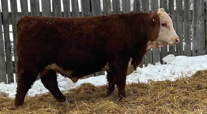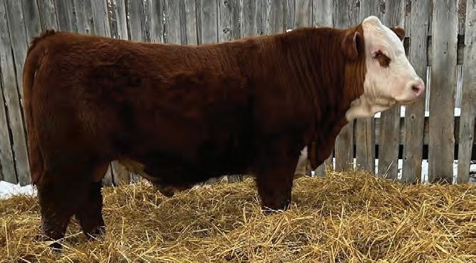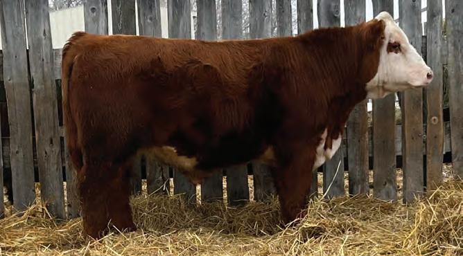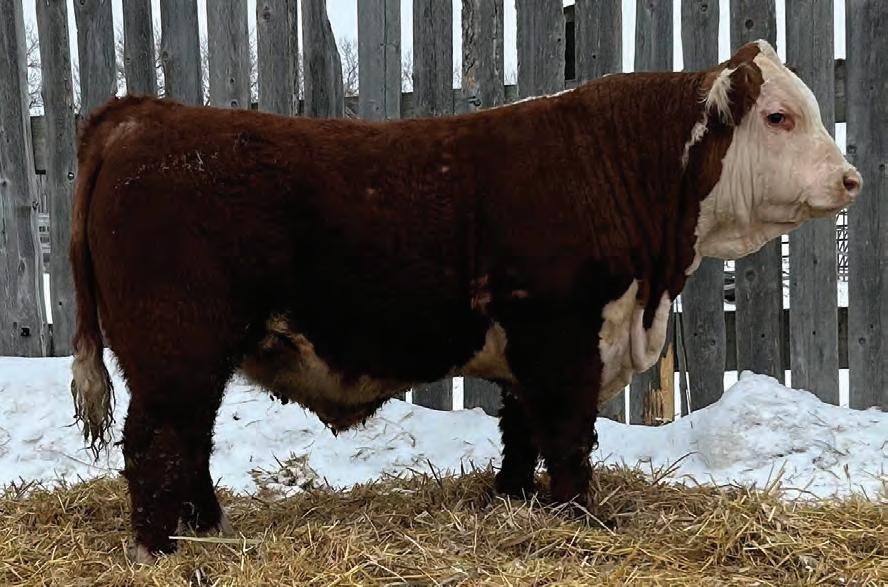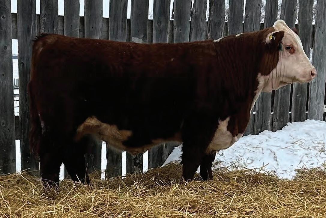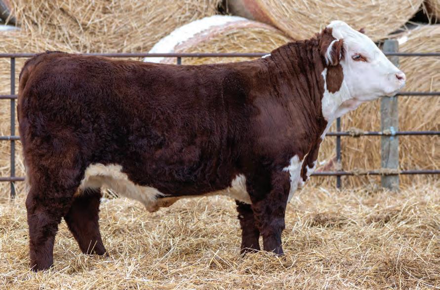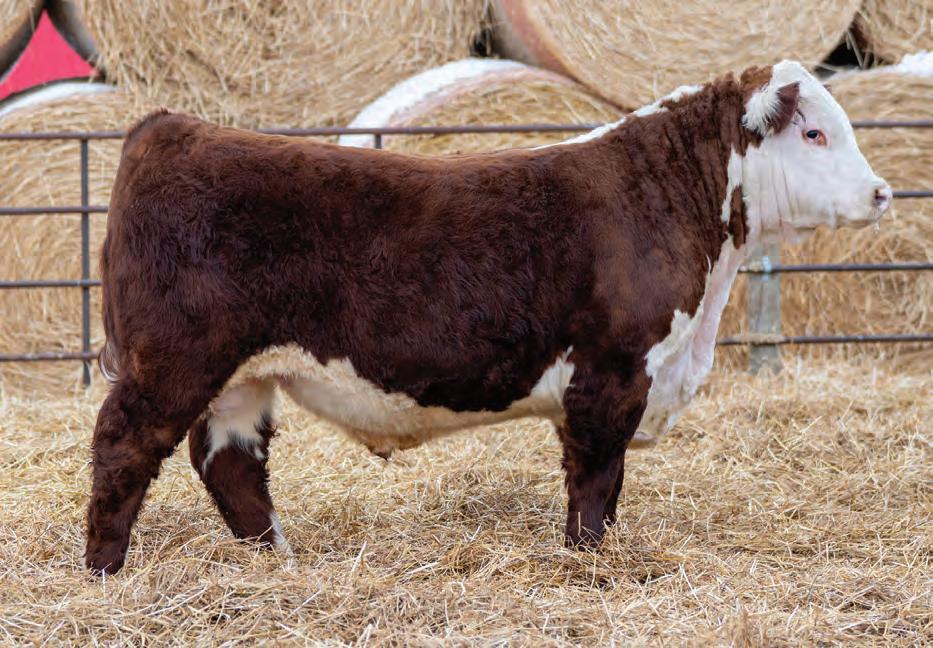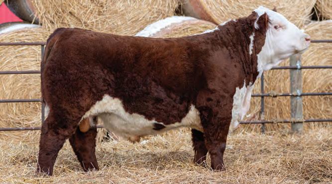 Norwood is a compact, well-marked son sired by our Masterplan herd bull, Keynote. His dam, Bounty 219G, is an exceptional Blueprint daughter known for her ideal udder; she was a standout at the 2021 Medonite Sale and our top selection. Norwood carries outstanding genetics from Doug and Wanda Mann’s Phantom Creek Polled Hereford program.