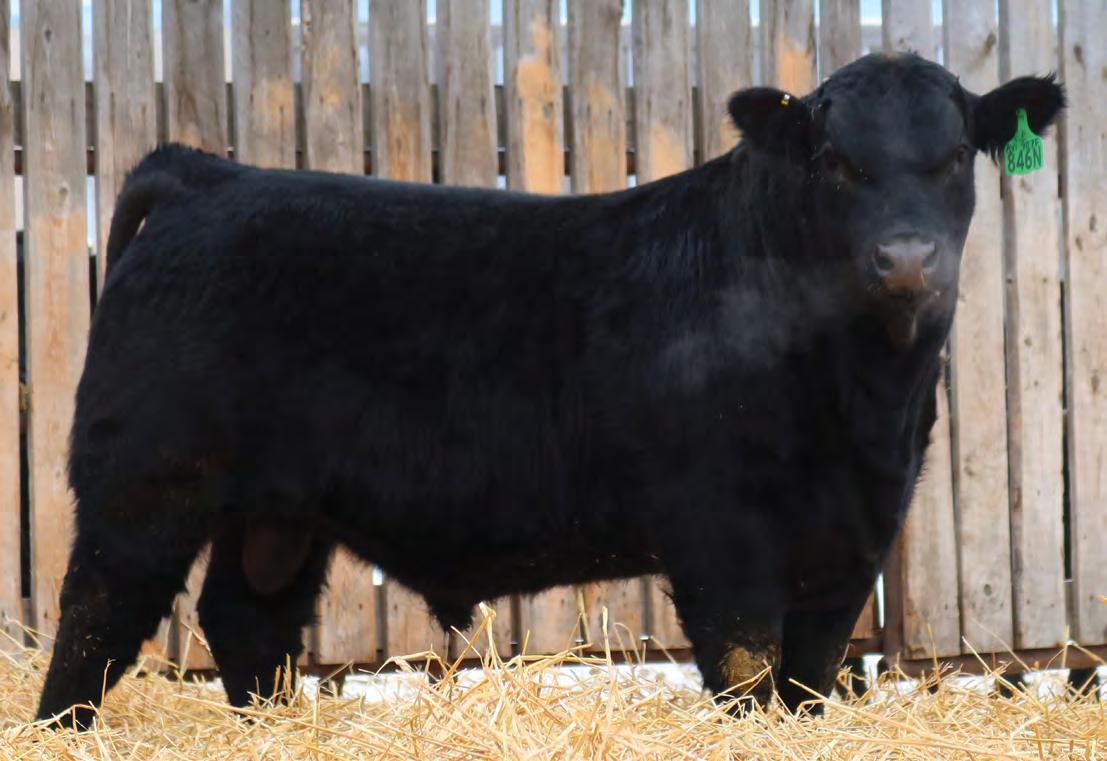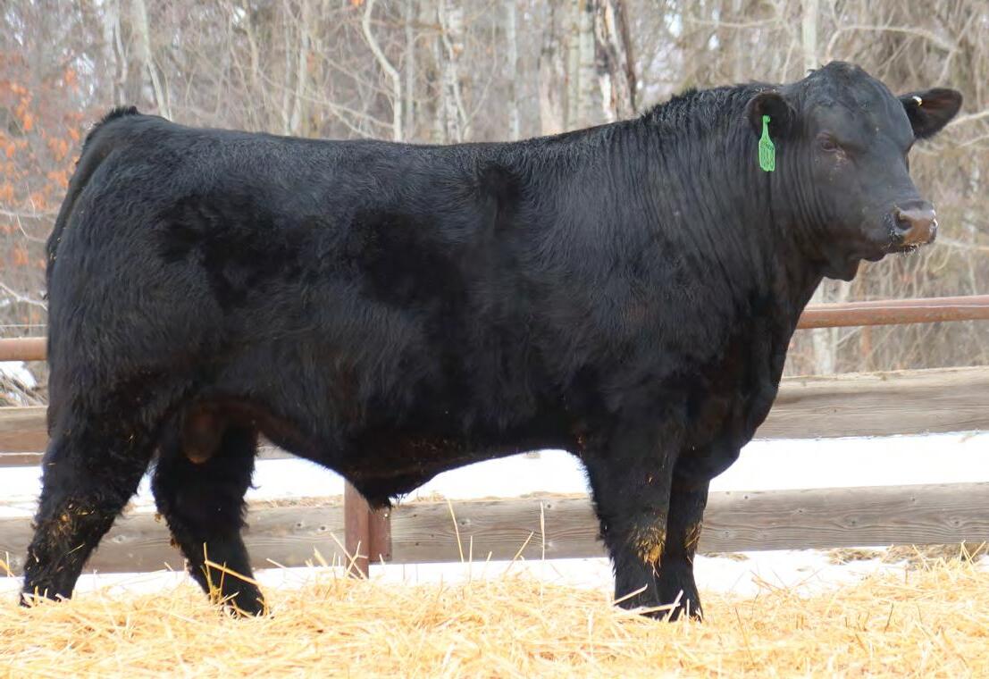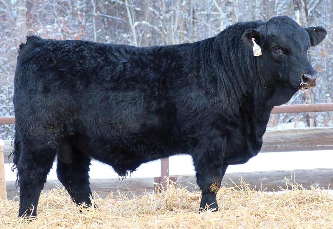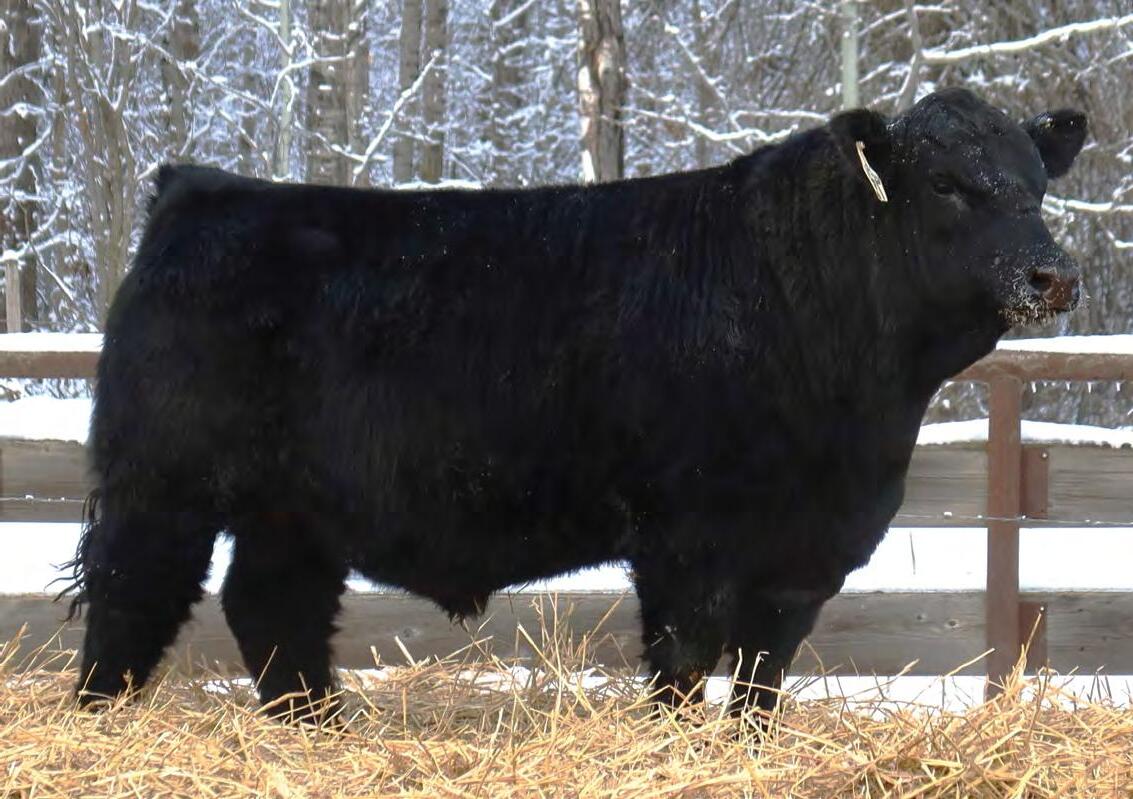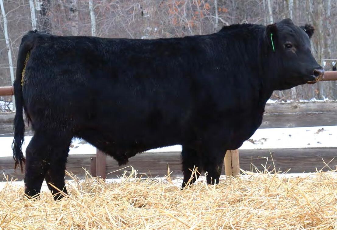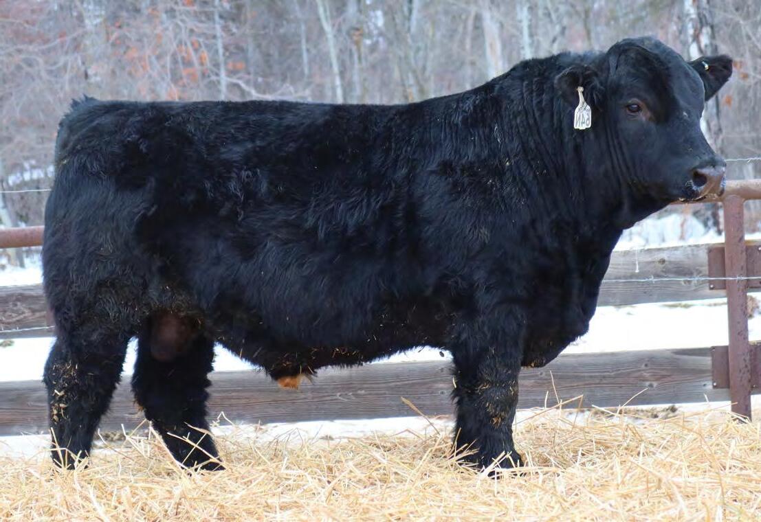 Sound, trouble-free cattle, with excellent maternal characteristics. These bulls have impressive weight and ultra-sound values. The Movin’ On progeny are next level predictable and definitely part of herd improvement. We have calved many Movin’ on daughters. They are tidy uddered, angular, and big ribbed. This is a bull with broody, high performing genetics and a highly proven pedigree. We saw Movin’ On in Kentucky as a long yearling - he is an Angus muscle bull with excellent tracking ability, big feet and big muzzled.