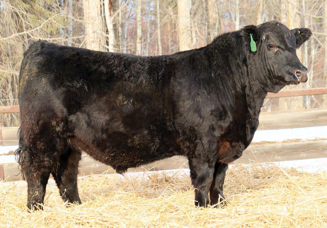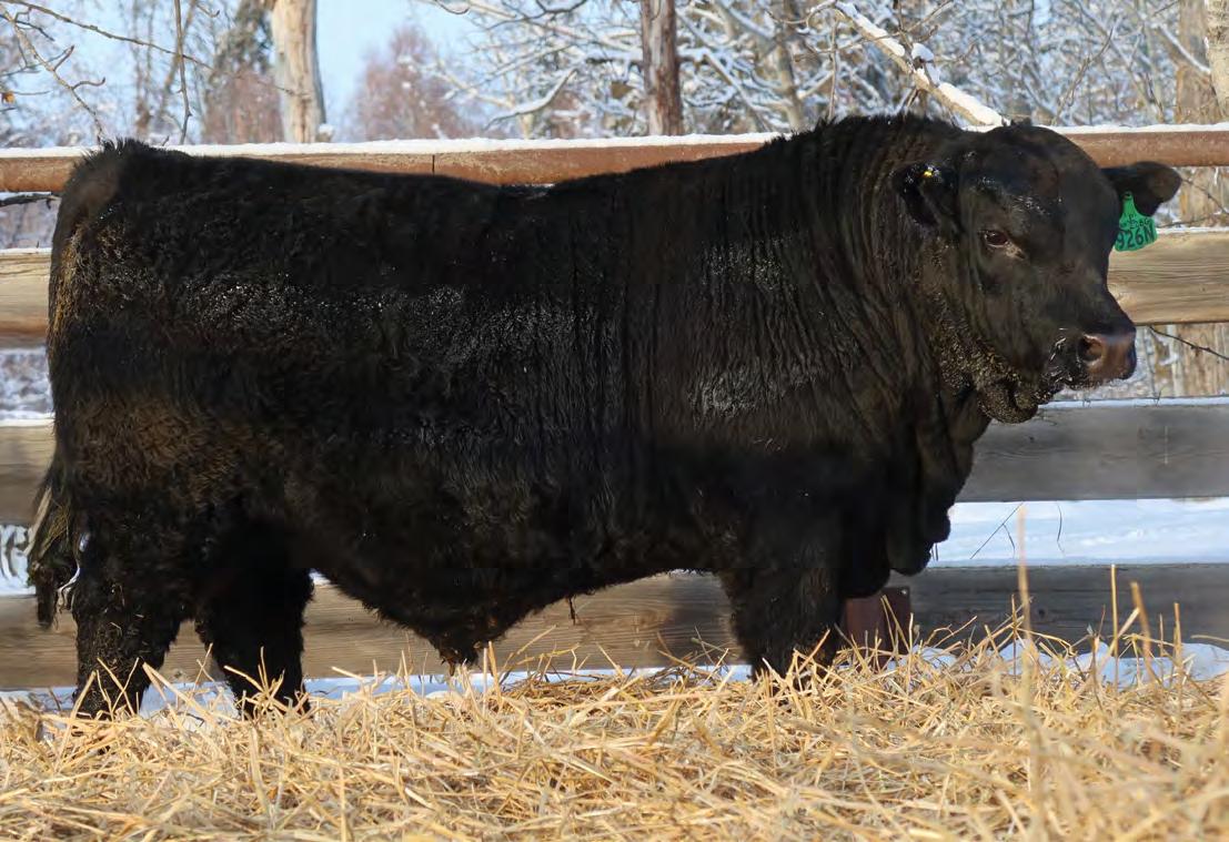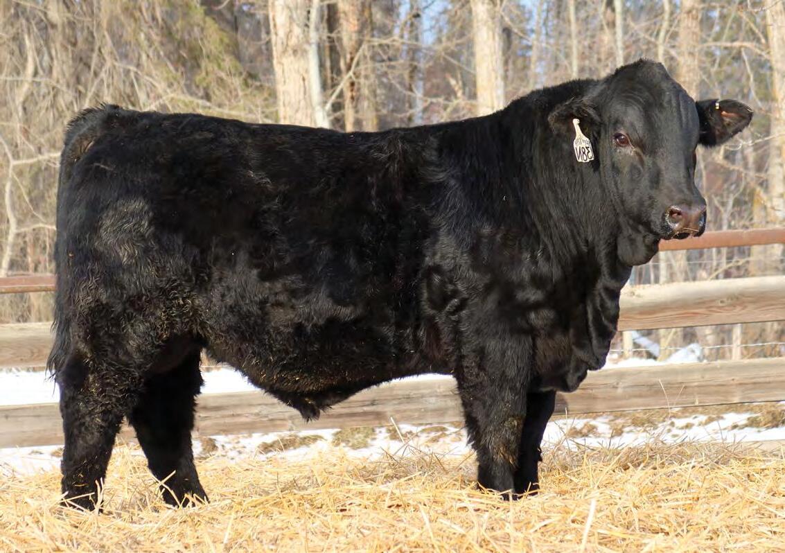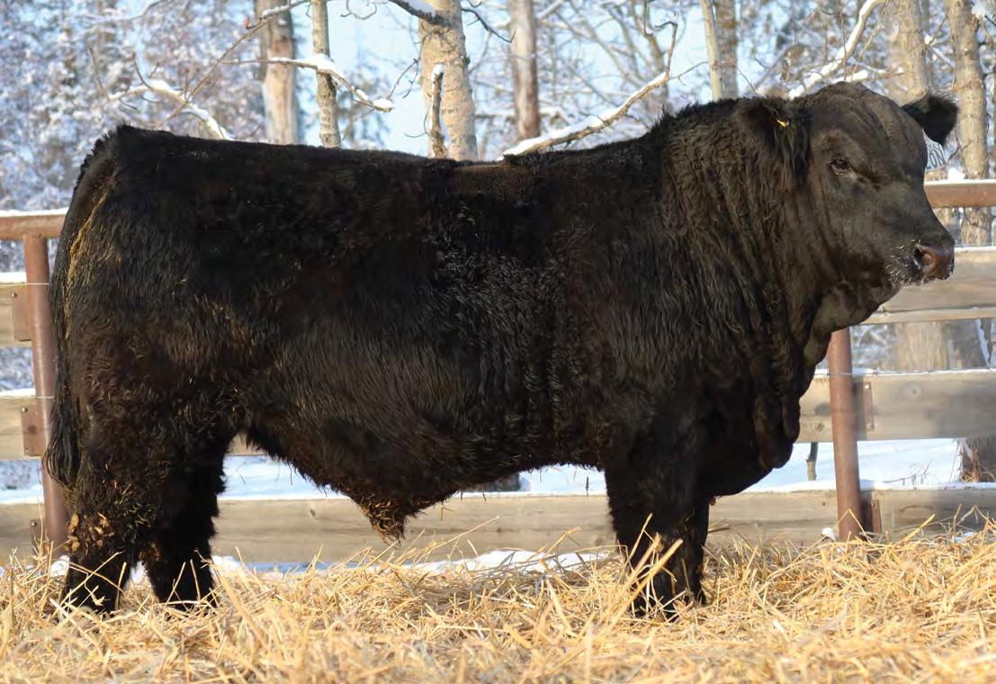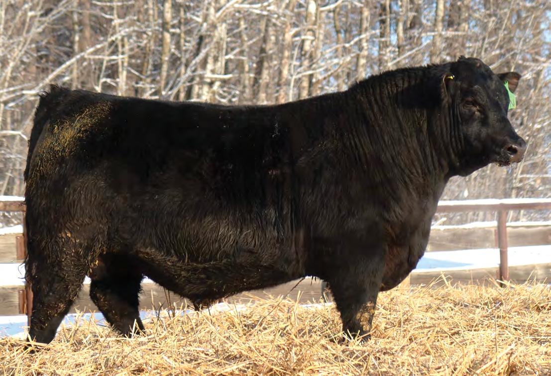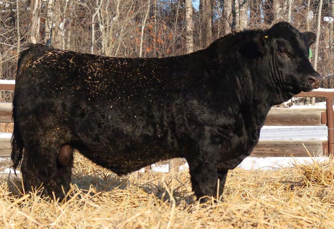 Sound, trouble-free cattle, with excellent maternal characteristics. These bulls have impressive weight and ultra-sound values. The Movin’ On progeny are next level predictable and definitely part of herd improvement. We have calved many Movin’ on daughters. They are tidy uddered, angular, and big ribbed. This is a bull with broody, high performing genetics and a highly proven pedigree. We saw Movin’ On in Kentucky as a long yearling - he is an Angus muscle bull with excellent tracking ability, big feet and big muzzled.