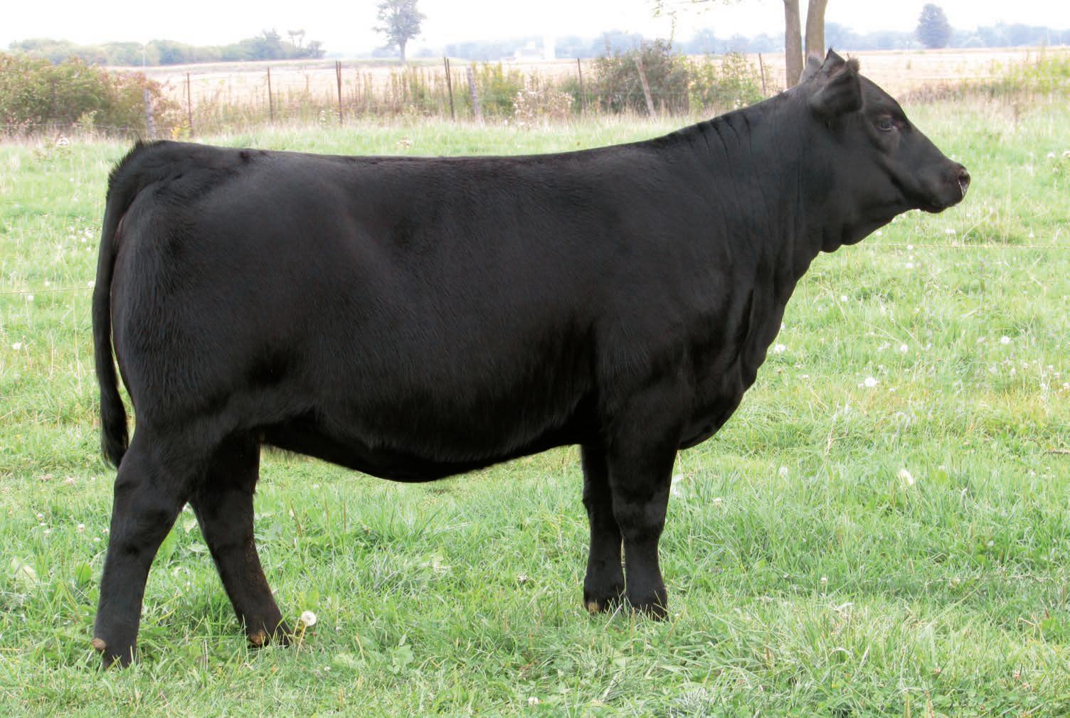 GF Evening Tinge 178L is a stunning young female that exemplifies excellence combining a proven pedigree with outstanding phenotype and performance. At the time of printing this catalog, her first calf is pushing down the scale at a whopping 3.6 WPDA. While lbs is extremely important in todays beef industry having females with good feet exceptional udders and depth of rib play important roles in having a low maintenance herd and longevity—all of which 178L checks the box for.