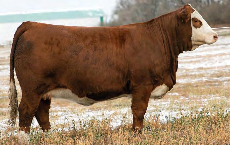 60N is a moderate framed bull that is right full of red meat, square over his top, thick through his hindquarter, and deep through his lower third. A bull with as much shape as any in the pen.