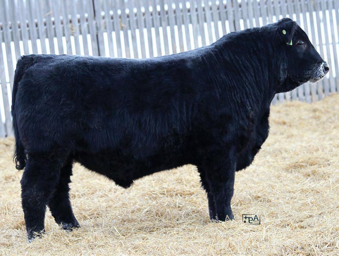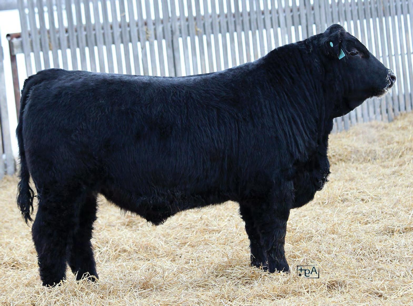 A young Legacy son with modest birthweight, and typical Legacy build of square top, and big hip. A bull whose dam stems from our Pocahontas cow family. HOMO POLLED, HOMO BLACK