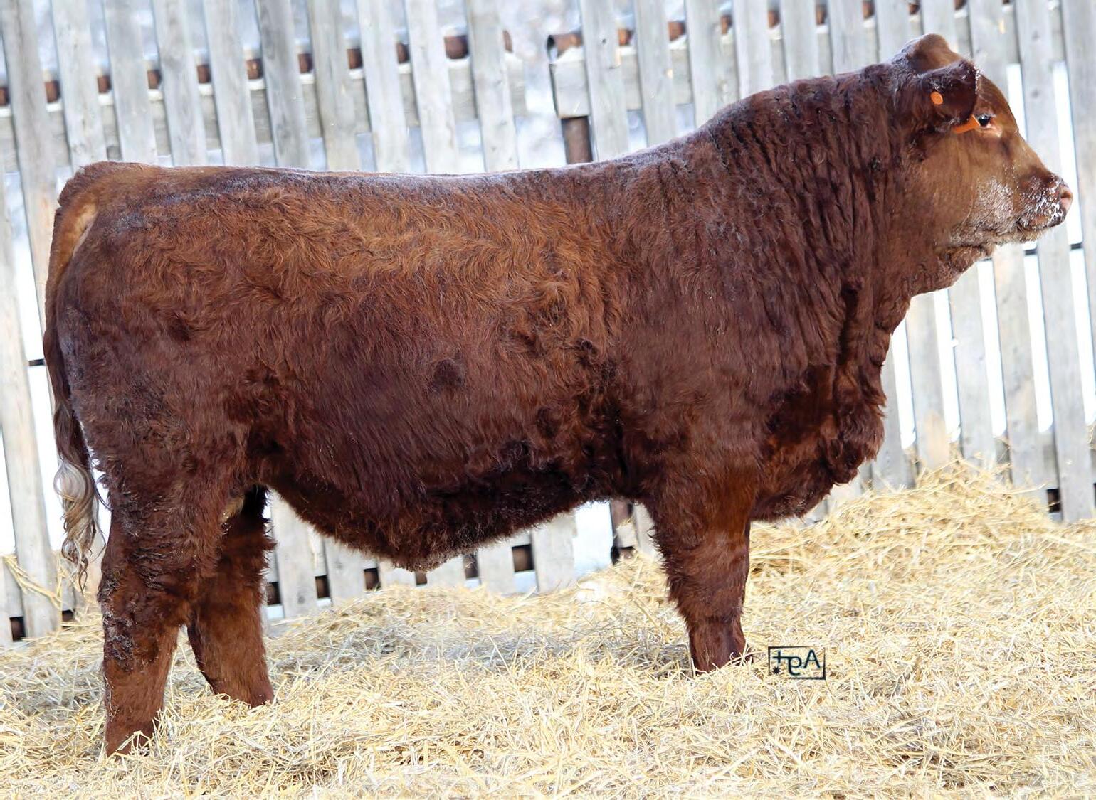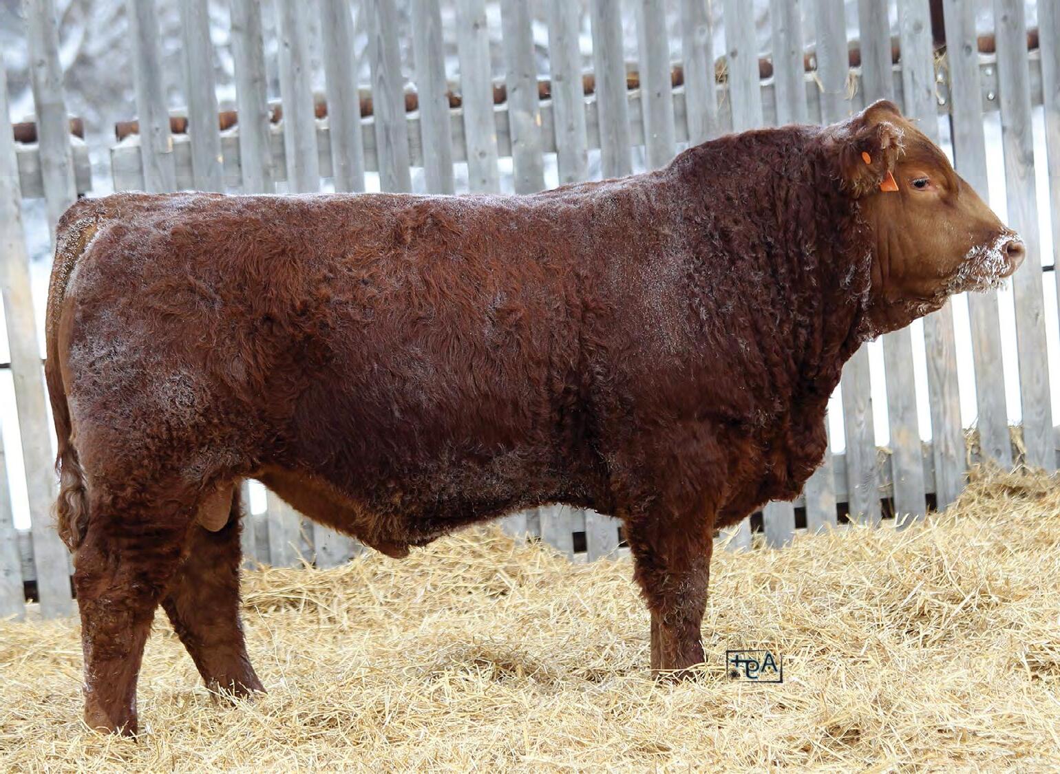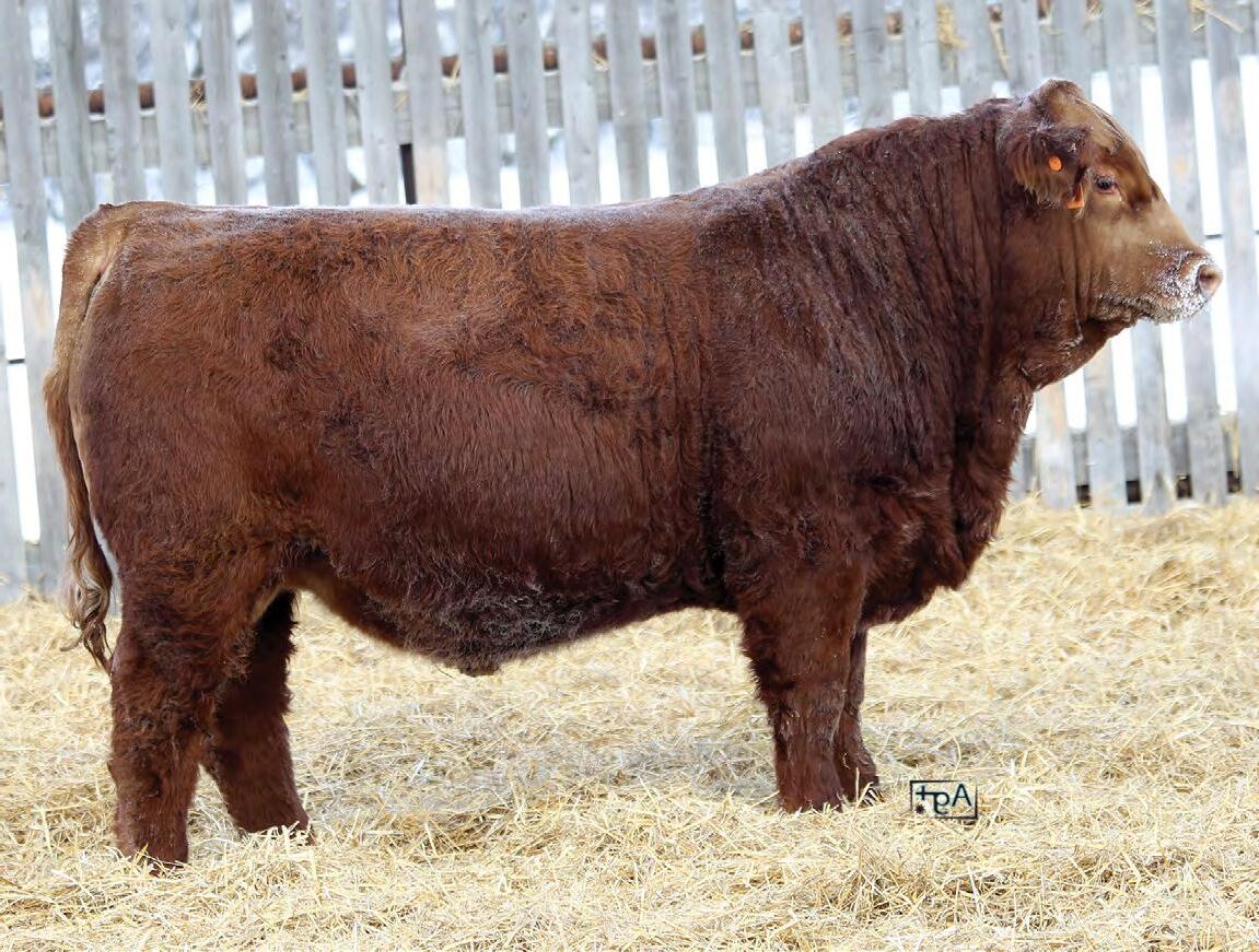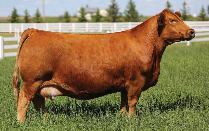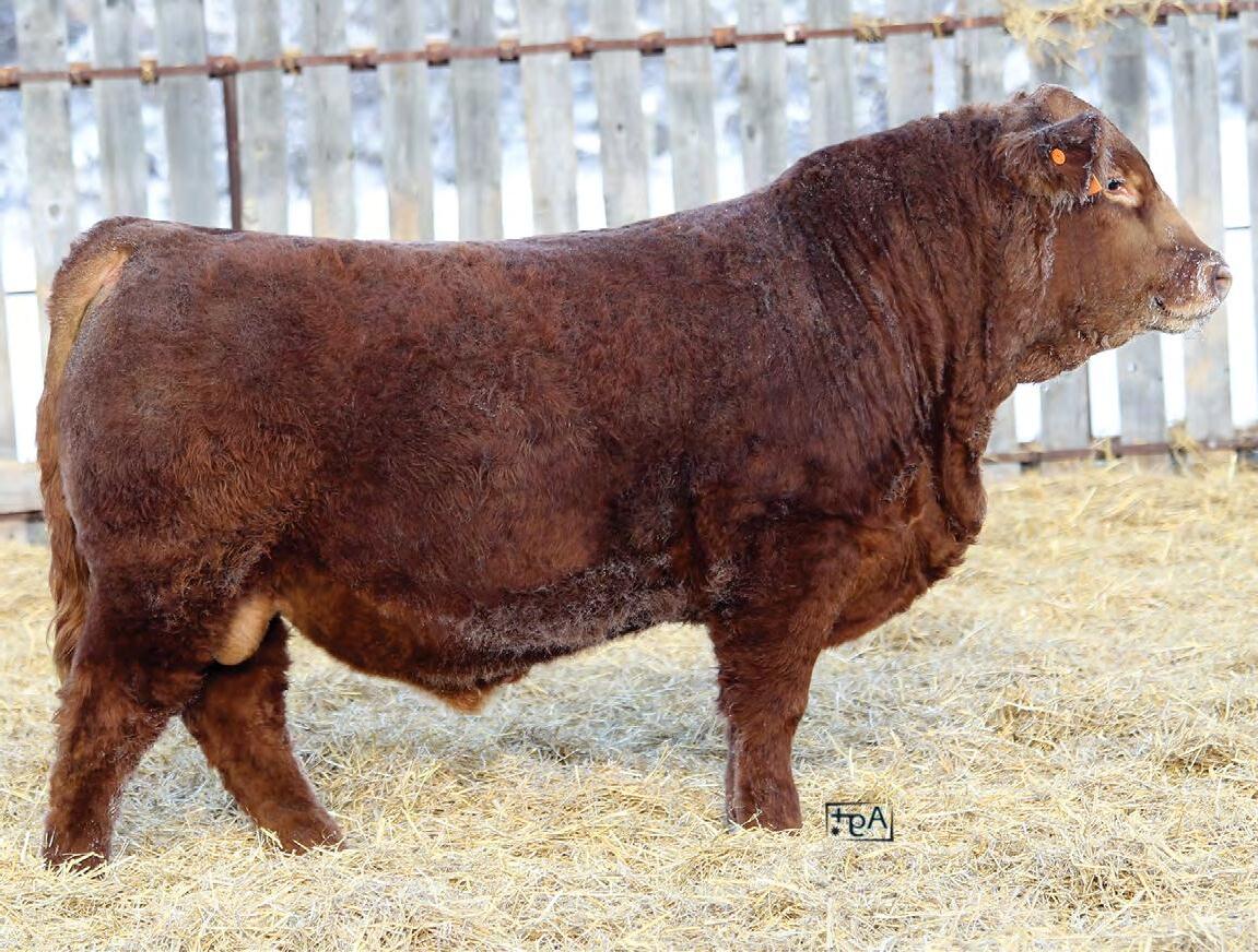 A red bull from one of our most promising young cows and sired by the AI bull MRL Power Play who we have had great success with over the past years. A full sister to 32N has been retained and weaned a very good heifer calf this fall. 32N is a larger framed bull with lots of hindquarter and rib shape. Expect him to sire top end replacement females.