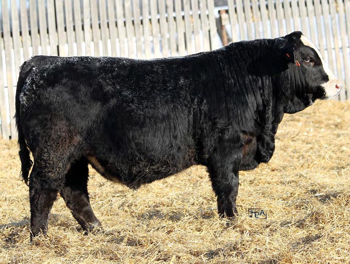 A young bull from a great female. 110N dam was purchased from Spring Creek Simmentals as a lead off female in one of their first production sales. 110N is moderate framed and a big volumed bull. A bull we feel has as much potential as any bull in the pen. HOMO POLLED, HETRO BLACK.